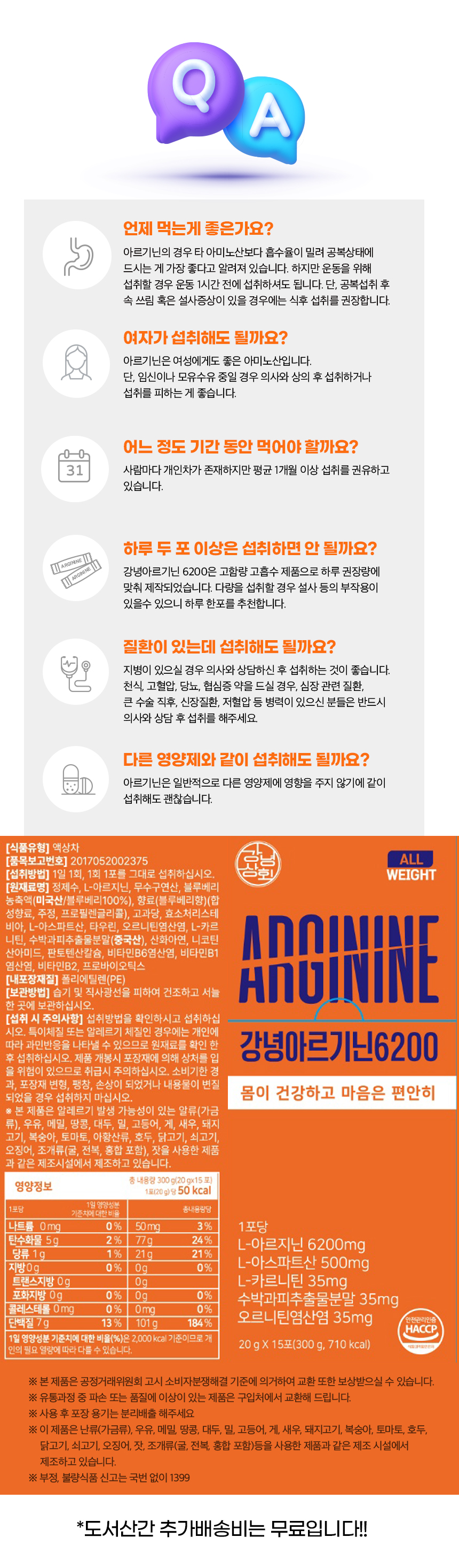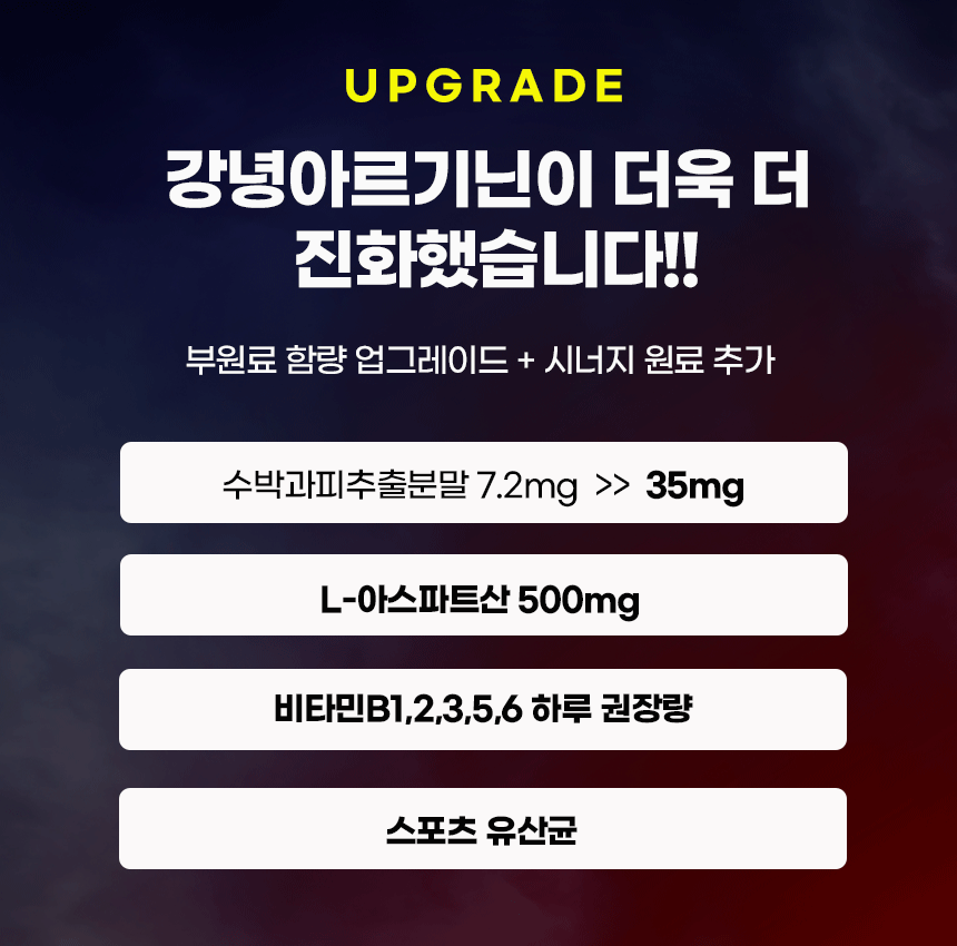 아르기닌과 가장 잘 어울리는 시너지를 일으킬 수 있는 부원료를 넉넉히 첨가하여