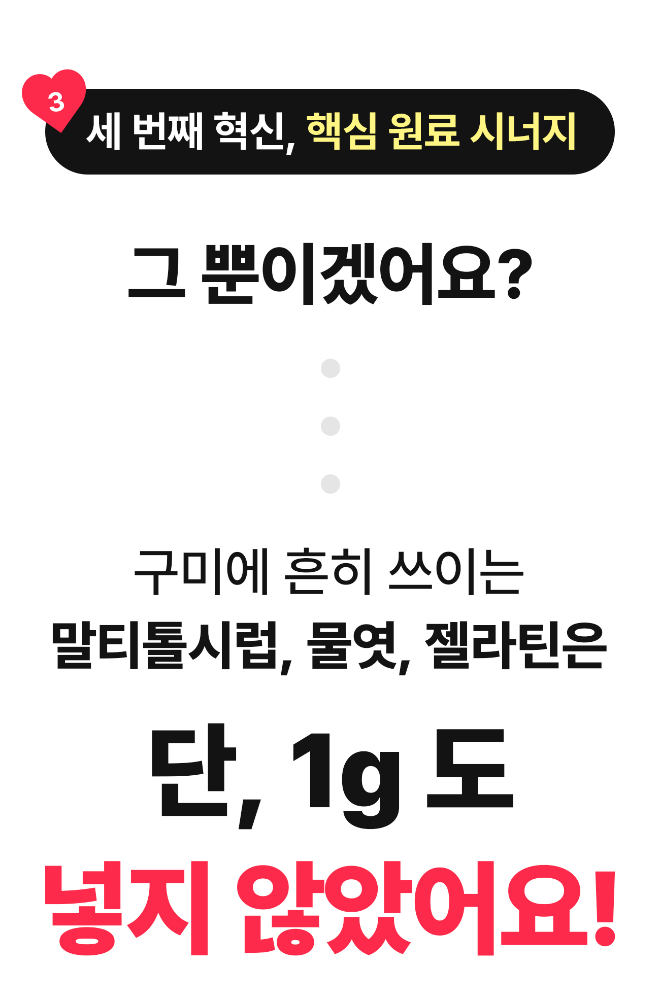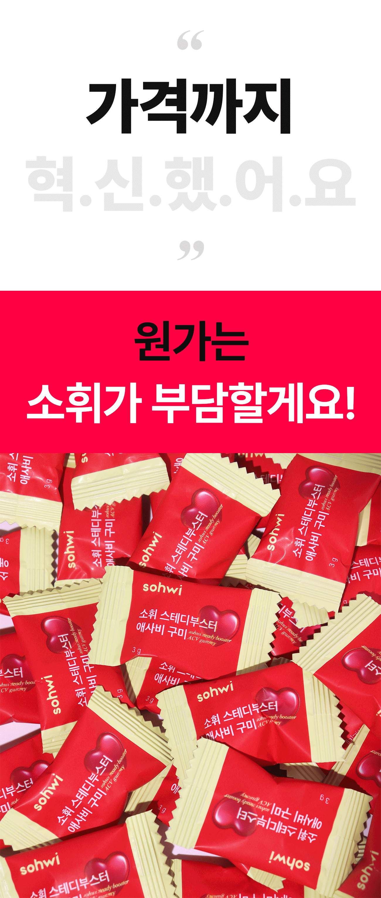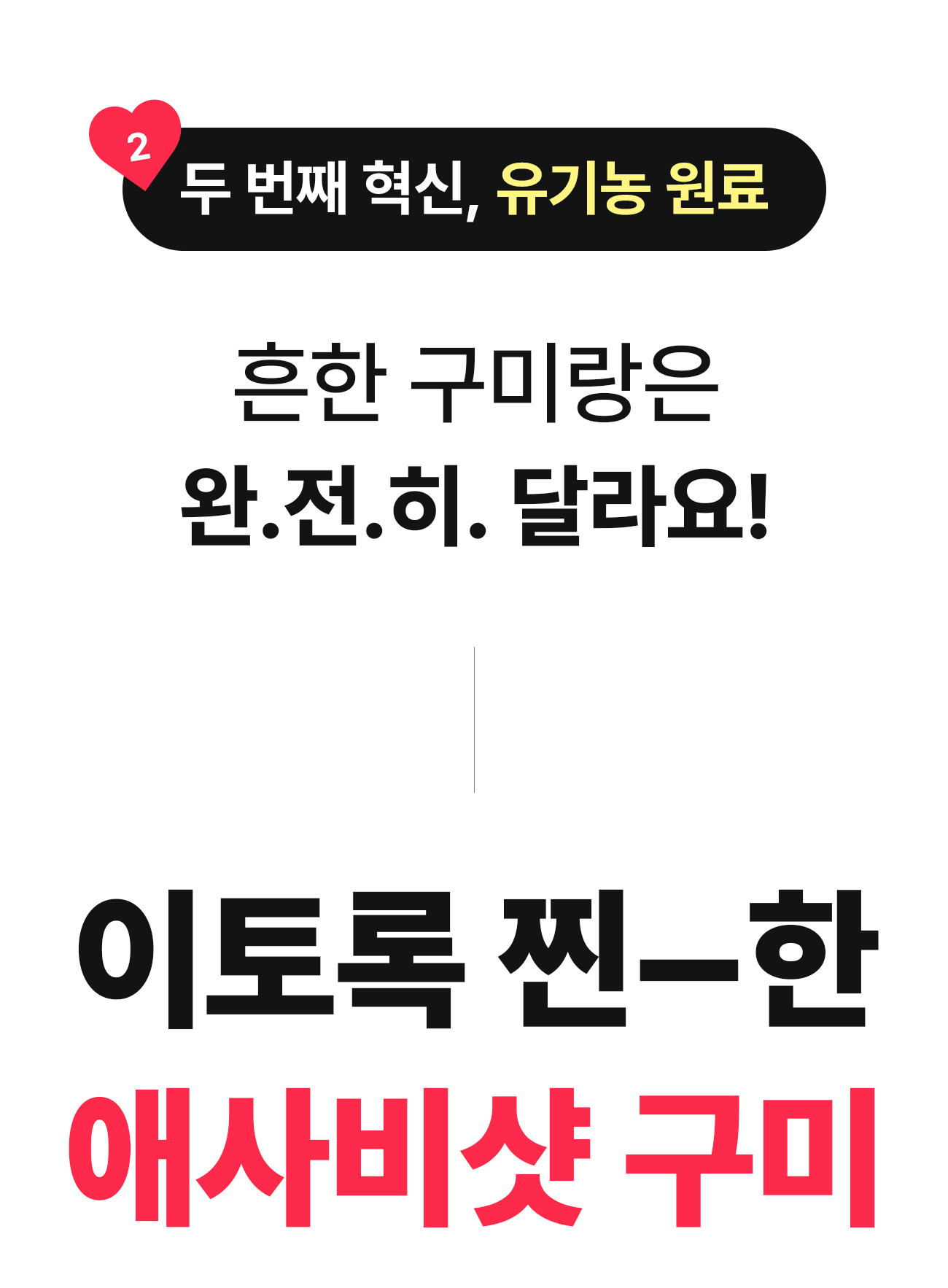 제품 개발자인 저는 건강을 엄청 생각해서 액상 과당, 배달음식은 거의 먹지 않아요. 클렌즈 워터, 음식도 직접 만들어 먹죠. 근데 딱 하나 포기 못하겠는 게 젤리예요. 어느 날 곰돌이 젤리를 맛있게 먹다가 이런 생각이 들더라구요 . '좋은 거 백날 해먹으면서, 이렇게 맨날 젤리를 먹으면 무슨 의미가 있을까' 정말 단순하게 이렇게 시작했어요. 구미를 맛있고 건강하게 만들어 보자.