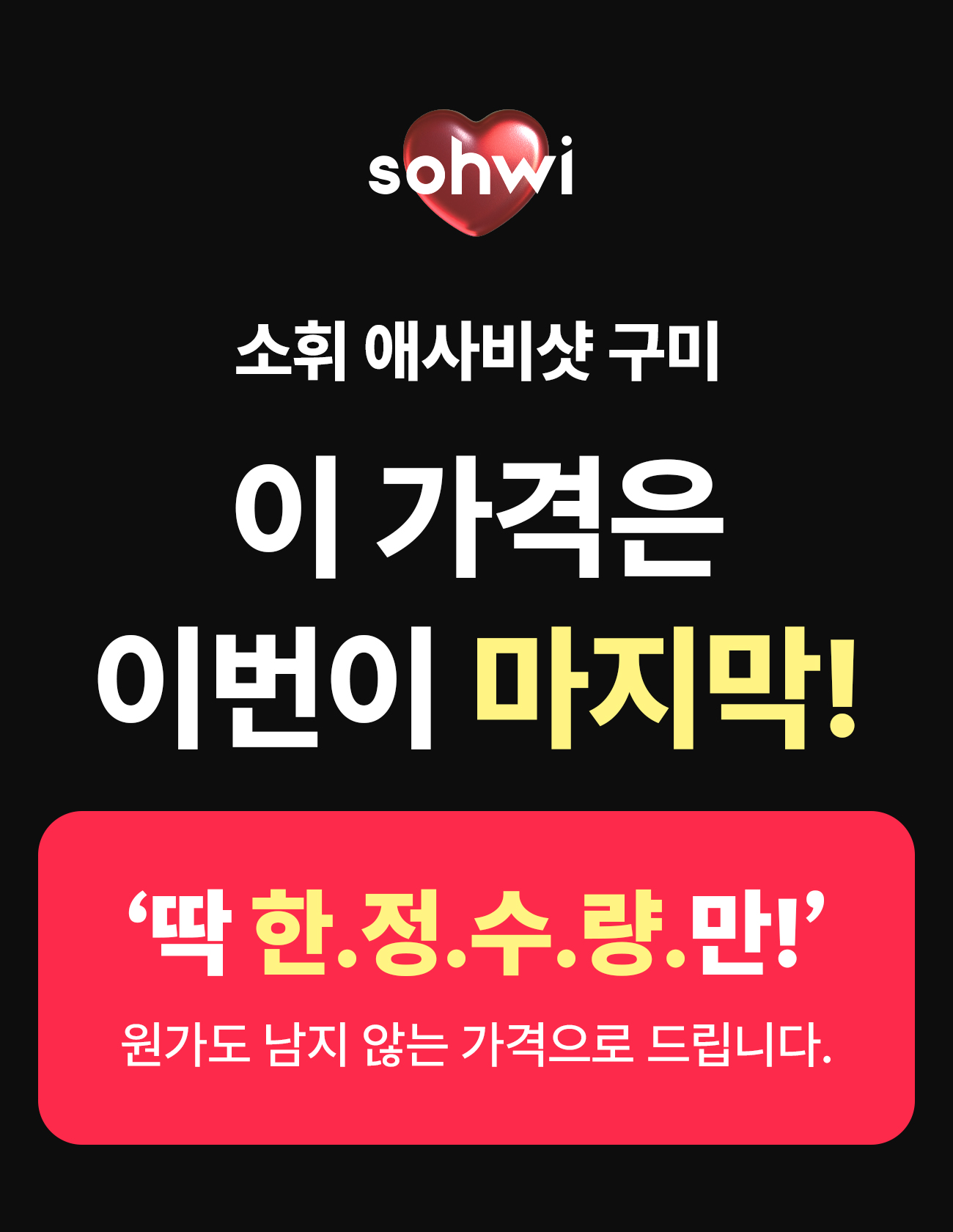10년의 경력. 누군가에겐 짧다고 느껴질 법한 시간이겠지만 저는 배울 건 다 배웠다고 자신 있게 말할 수 있어요. 시간을 쪼개서 정말 밀도 있게 배웠으니까요. 모든 경험, 노하우, 열정을 모아 온전히 소휘 그리고 애사비 구미에게 1,000% 쏟았어요.