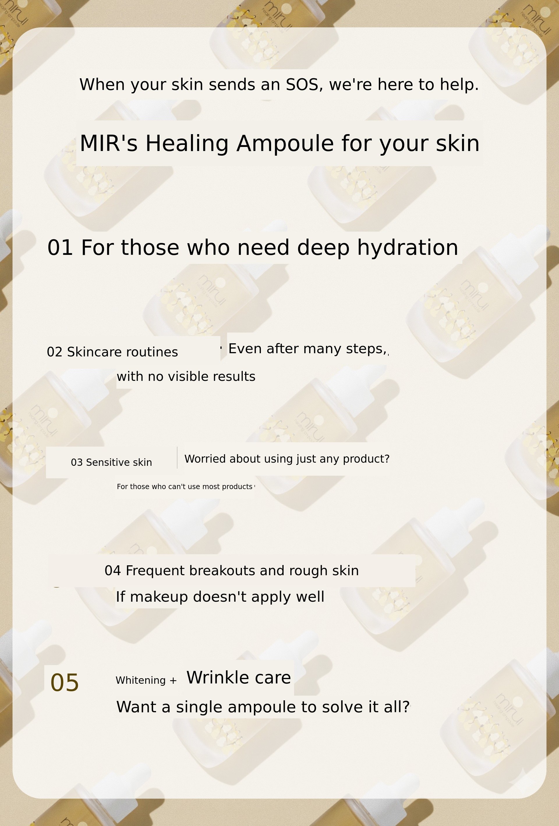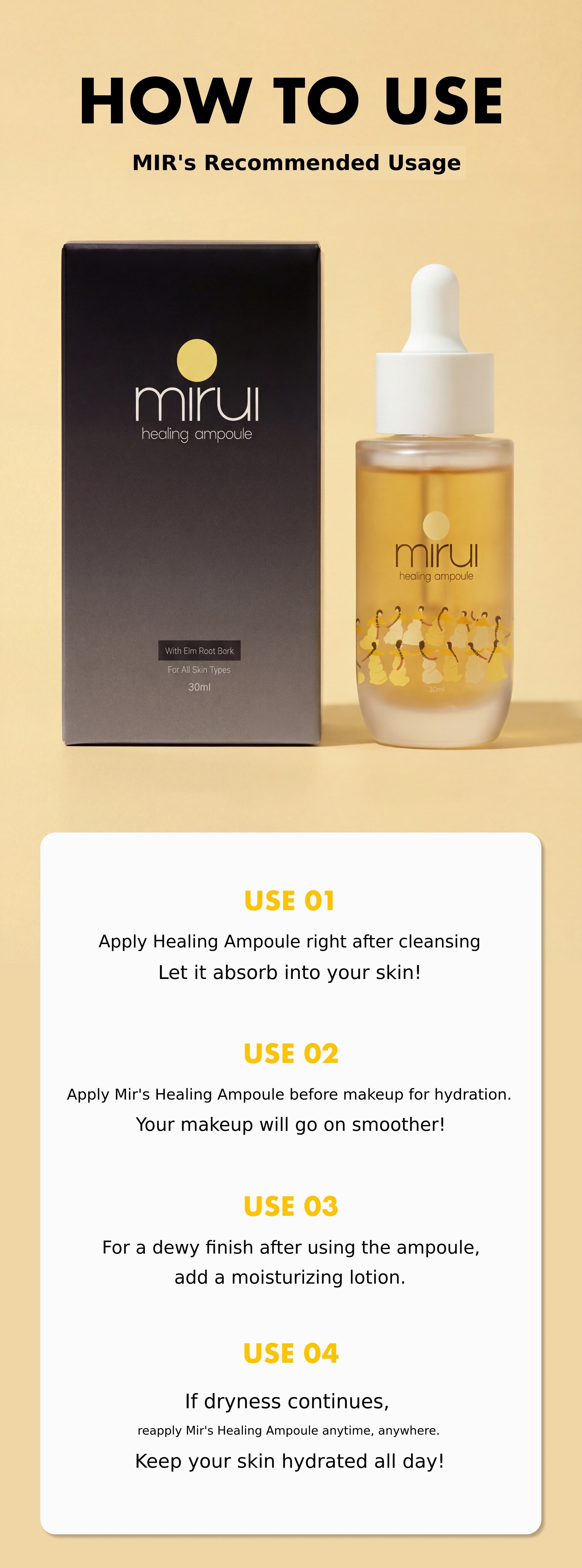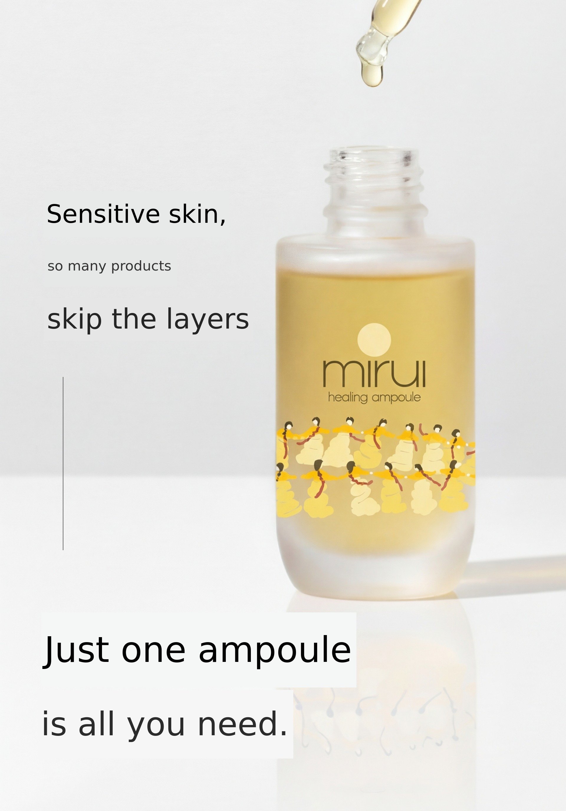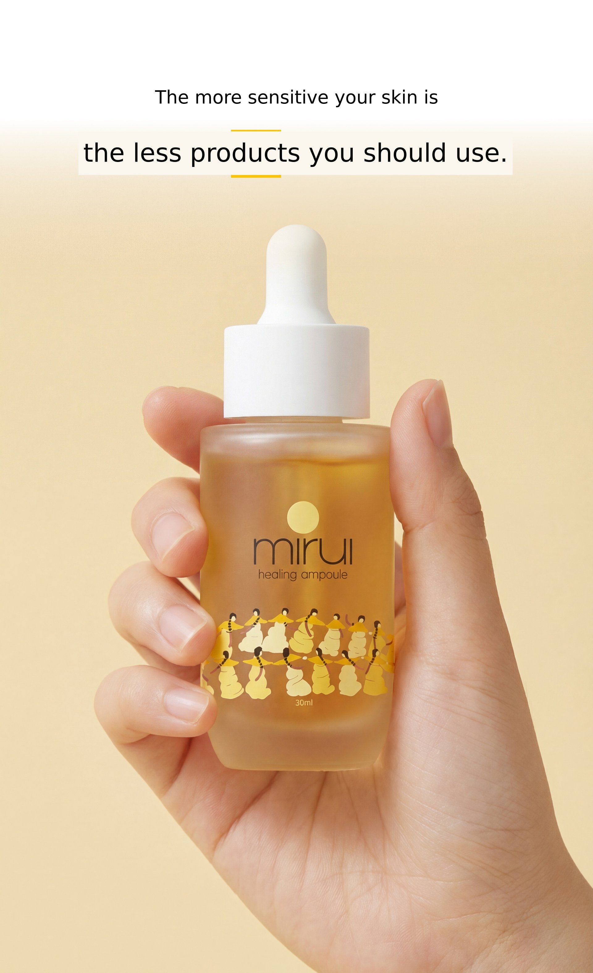 - Mirui's Healing Ampoule, introduced for the first time by Mirui, was created for those who are going through difficult times due to skin issues. I, too, once struggled with daily life because of skin problems, so I know how deep that pain can be. That is why I created this product, hoping it would help others regain a peaceful daily life as quickly as possible.
