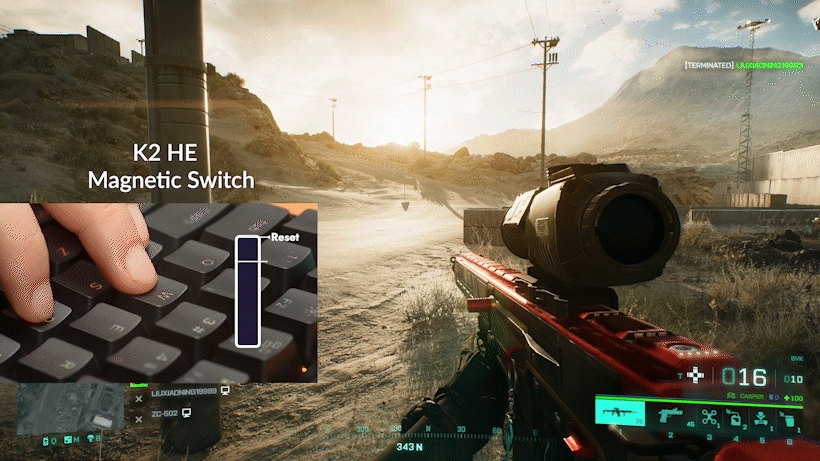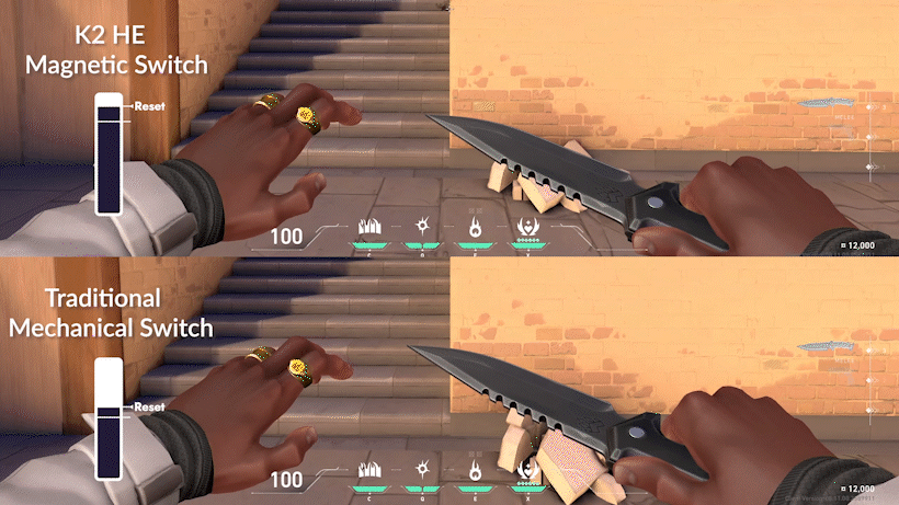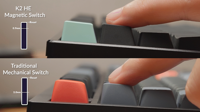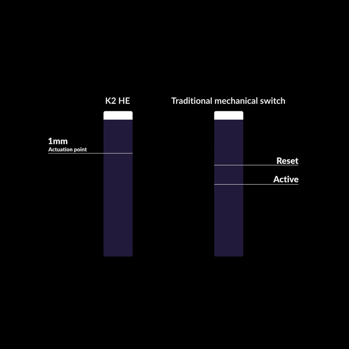 순간의 반응으로 승리를 위해 K2 HE는 고정된 작동 지점의 한계를 뛰어넘는 래피드 트리거를 지원합니다!