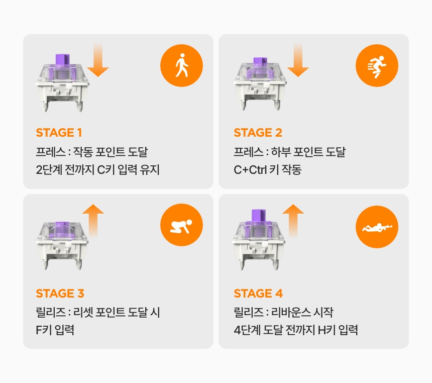 다이나믹 키 스트로크(DKS)로 이제 각 키에 키 입력 깊이에 따른 최대 4개의 동작을 할당 할 수 있습니다.