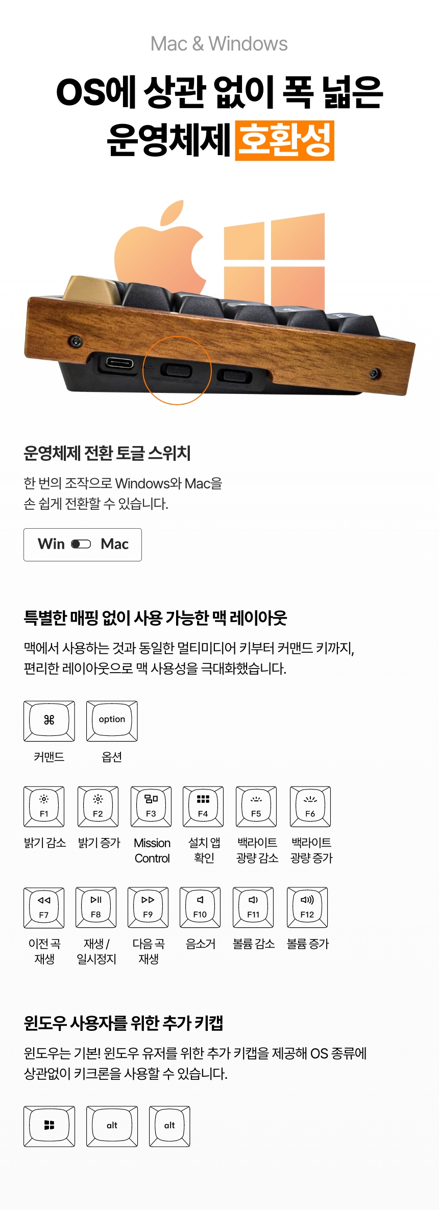 Mac과 Windows를 넘나드는 자유로움, 미니멀리즘 디자인 그리고 편의성과 기능까지 키크론을 손끝에서 느껴보세요