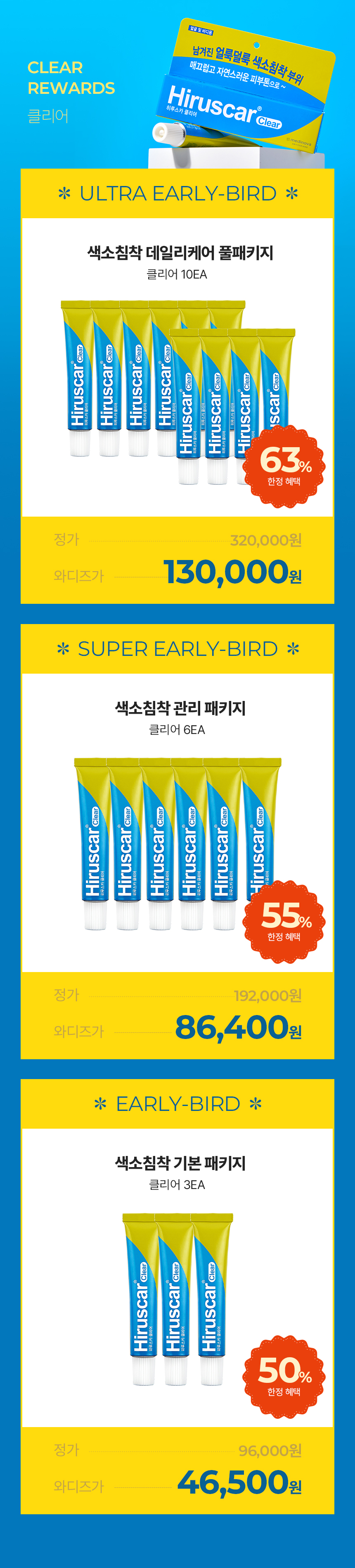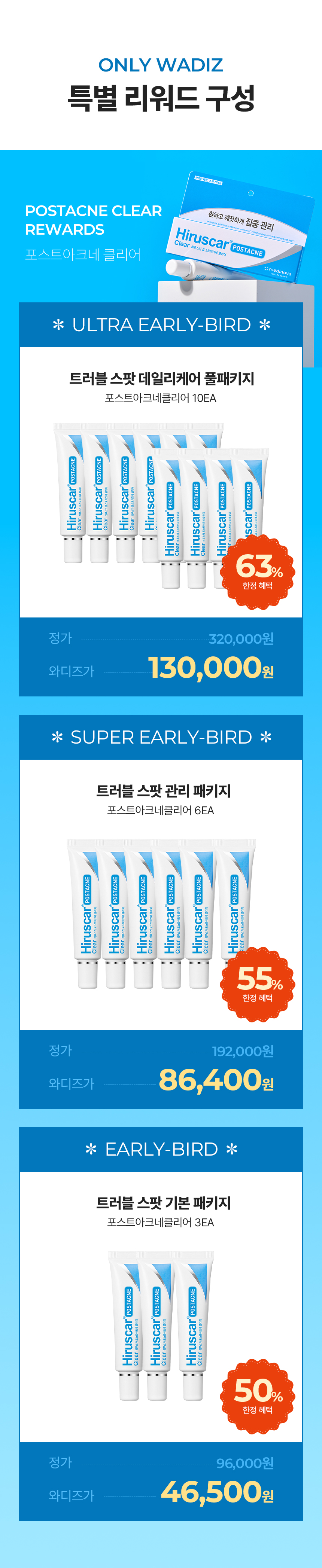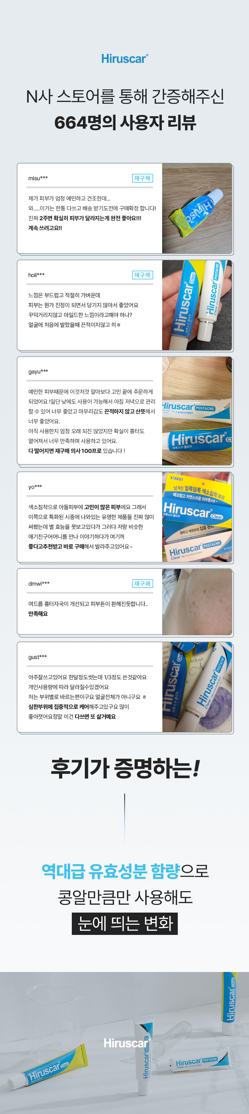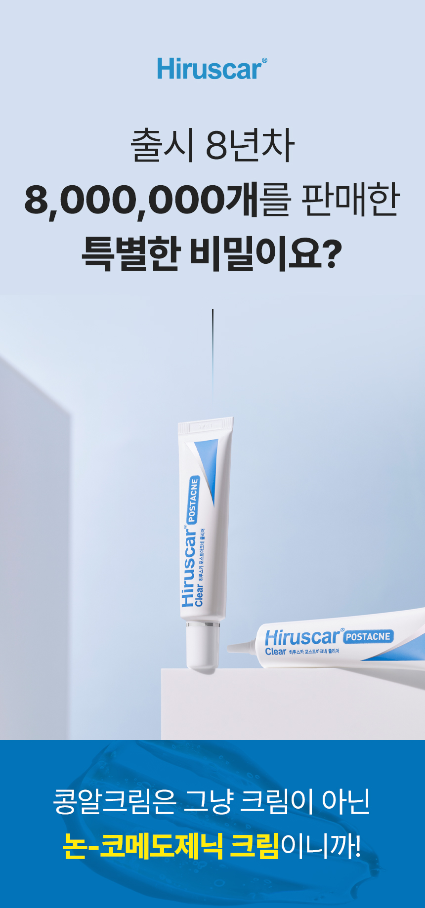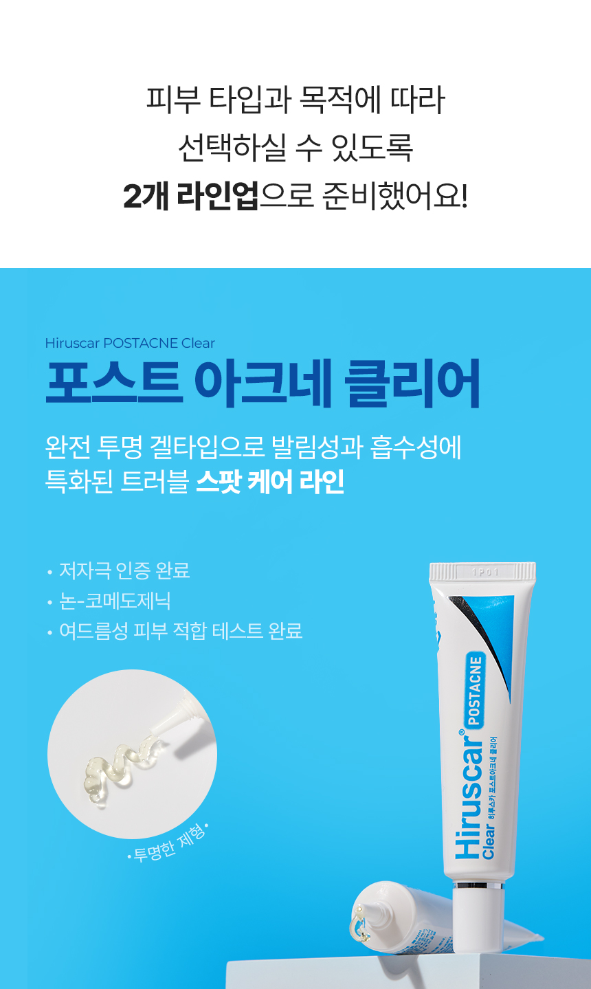 Hiruscar(Postacne, Clear) : 히루스카는 출시 8년만에 누적 판매량 8,000,000개 이상 판매를 달성했습니다. 히루스카는 한국 이외 홍콩, 대만 등 아시아 13개국에서 판매되고 있으며, 대표 아시아 8개국에서 매년 100만개 이상 꾸준히 판매되고 있는 검증된 제품입니다.