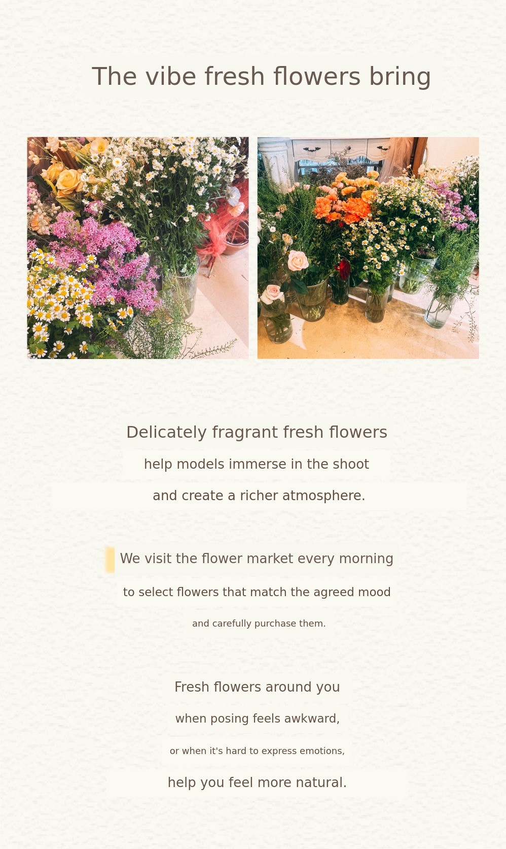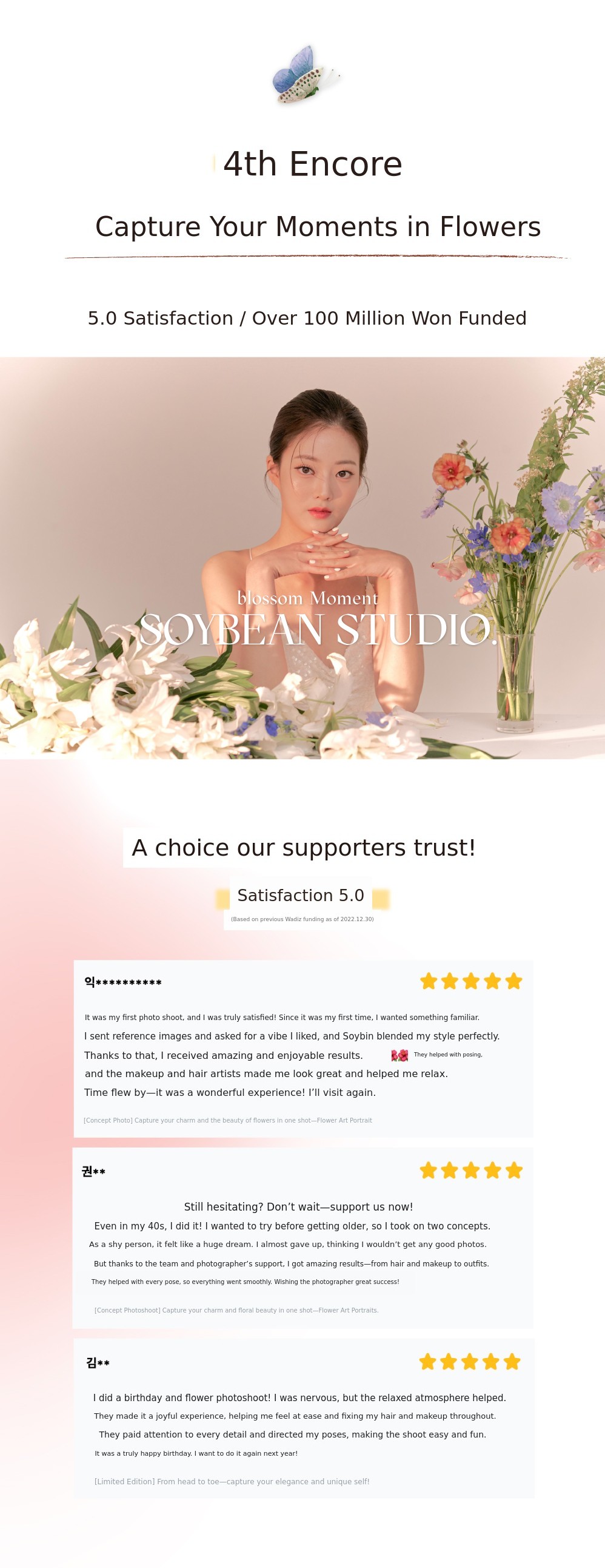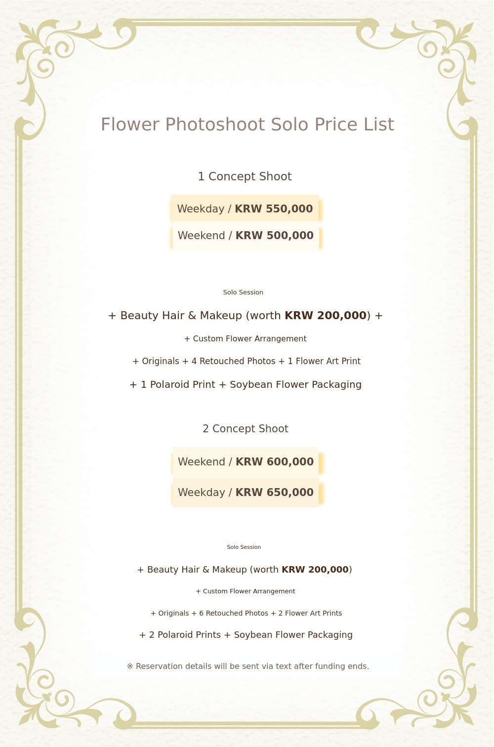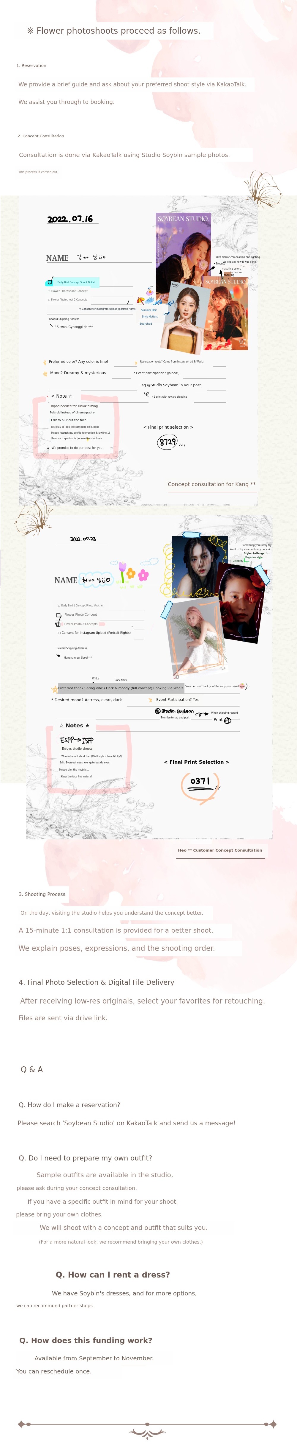 1. 🌸 Personalized Flower Photo Shoot - Special photos with custom flowers and seasonal blooms 2. 📸 Professional Customized Photo Service - Complete support from 1:1 consultation to makeup and retouching 3. 🎁 Instant Print and Event Benefits - On-site instant prints and extra prints for photo event participants
