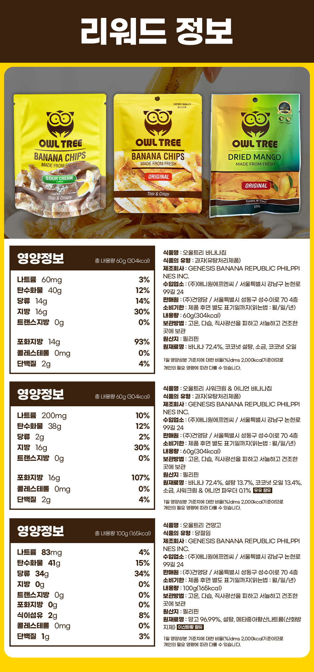 오울트리 바나나칩은 인공감미료를 일제 사용하지 않고,