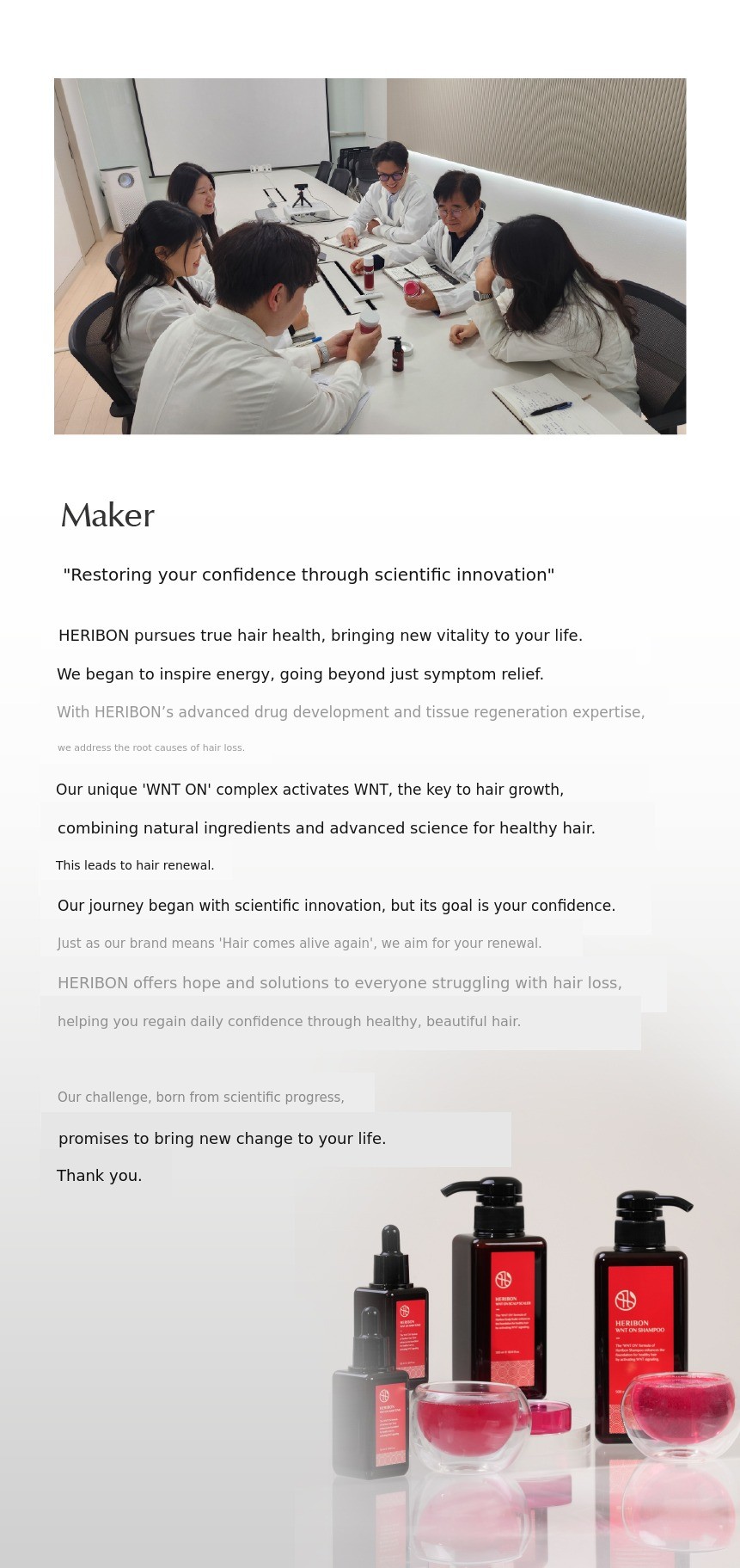 We did not want to sell our product as just another functional cosmetic for hair loss relief, containing only the functional ingredients approved by the Ministry of Food and Drug Safety, or by wrapping it with exaggerated advertisements and clinical trial results that can be obtained with money. We wanted to share our story and convey the value of Heribon. That is why we chose Wadiz. We believe that Wadiz supporters are not just ordinary consumers, but people who recognize the value of products and are curious about the direction of the brand. Through Wadiz, Heribon wants to be recognized for its value by supporters and continue to grow.