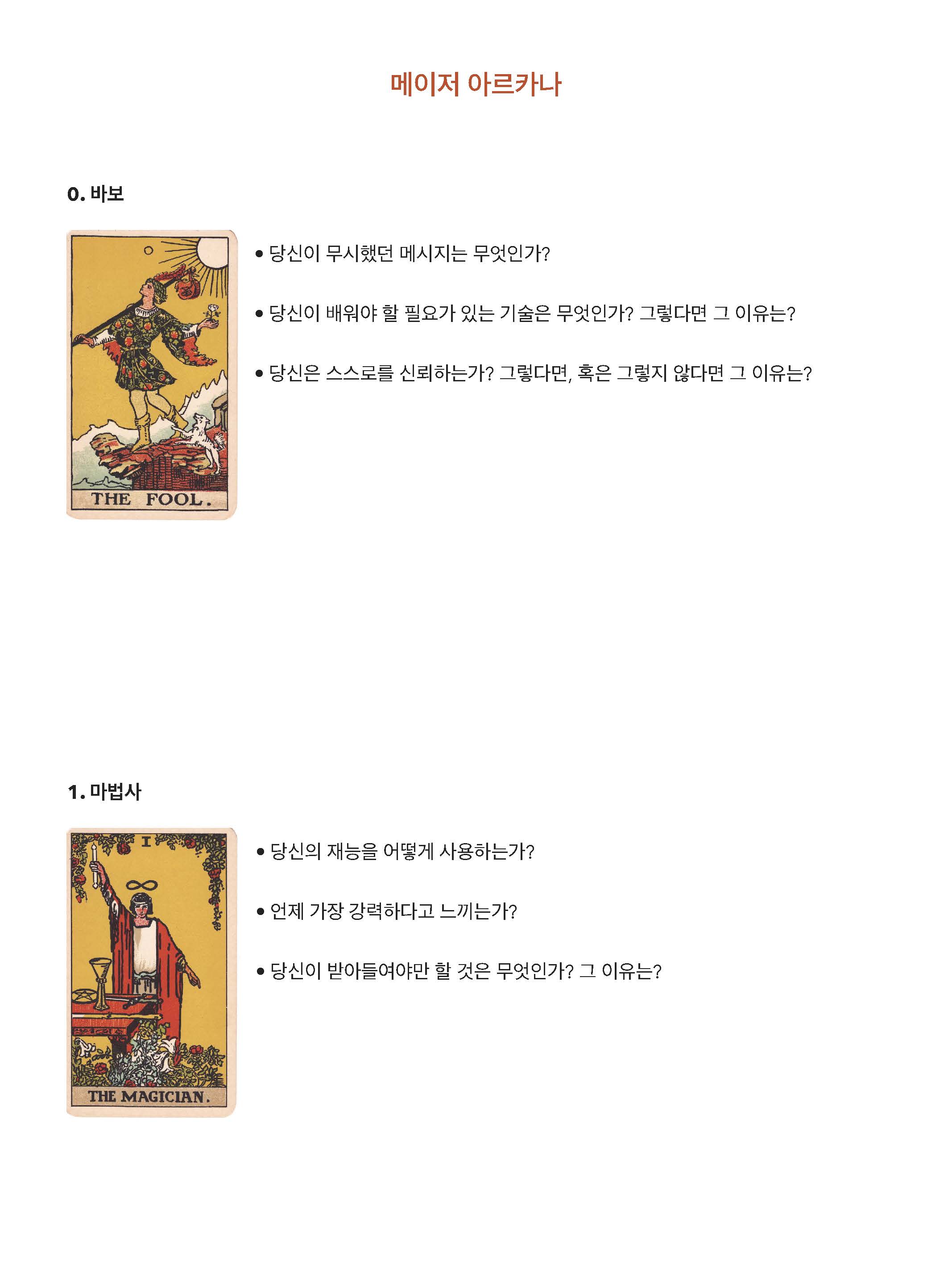 각 카드마다 주어진 타로저널의 질문을 통해 내면을 들여다보고 내가 정말 원하는게 무엇인지 알 수 있습니다.