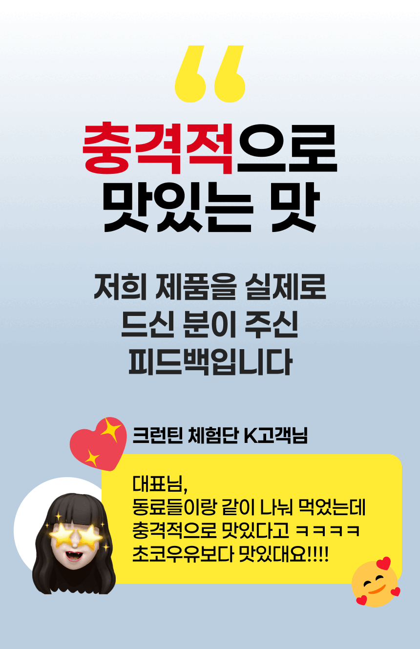 드셔보시고 결정하세요! 그만큼 자신 있습니다! 드셔보시면 반드시 만족하실 것이라 확신합니다!