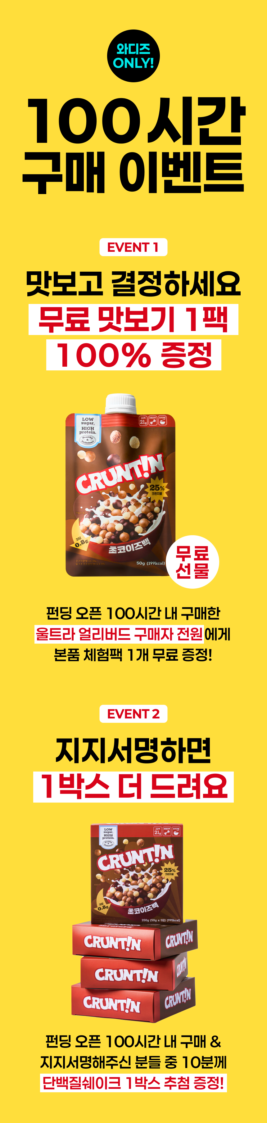 아무도 선뜻 가지 않은 길로 가서 만든 제품이기에, 세상에 없던 단백질쉐이크라고 자부합니다. 그래서 저희는 세상에 없던 제품들을 알아봐주시는 서포터분들이 있는 와디즈에서 출시해야 한다고 생각헀어요. 와디즈 서포터분들이야 말로 세상에 없던 제품들을 제대로 알아봐주실거라고 생각했거든요!맛과 포만감에 자신 있으니까,