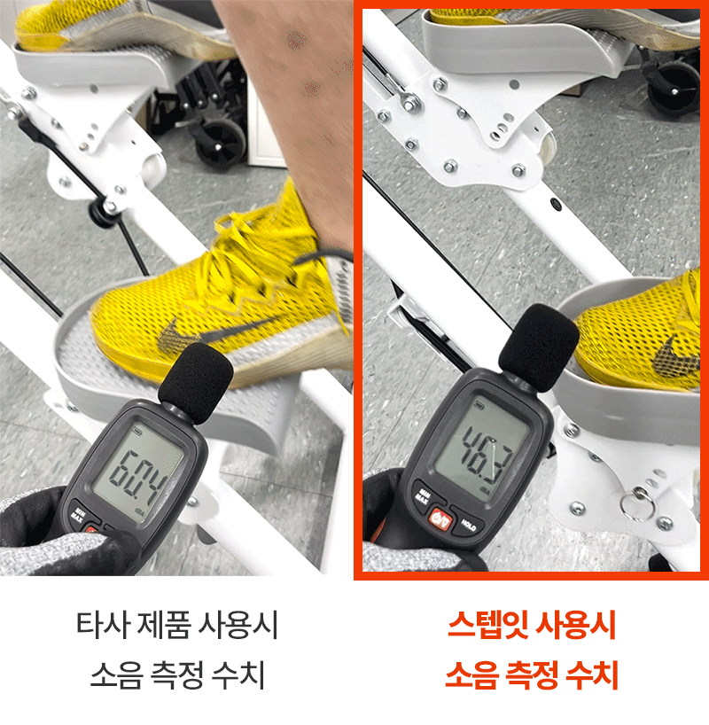 시중 일반 천국의 계단 제품보다 확연히 낮은 소음 측정 수치.