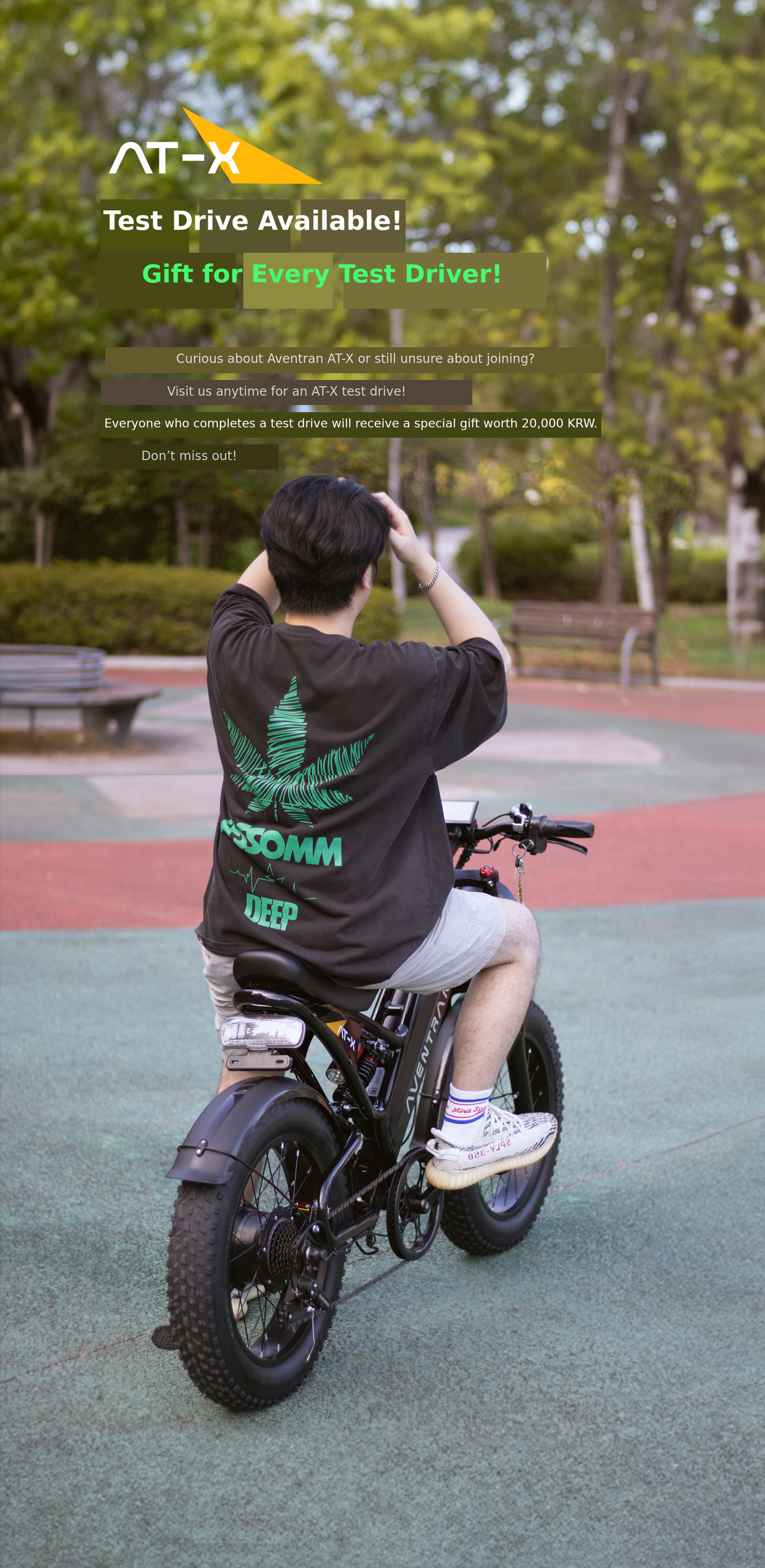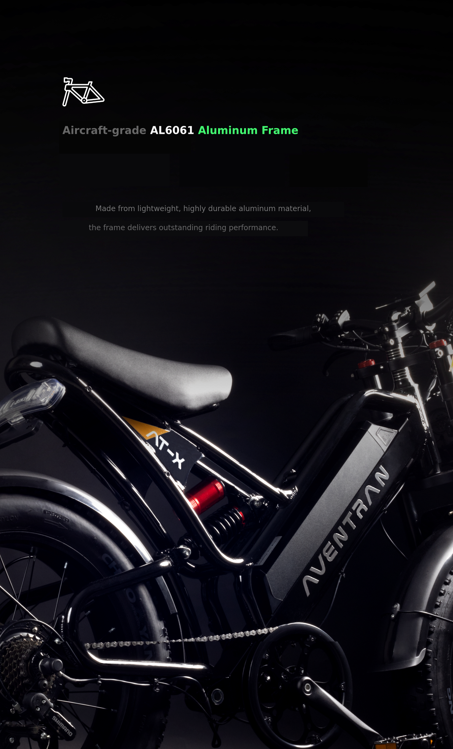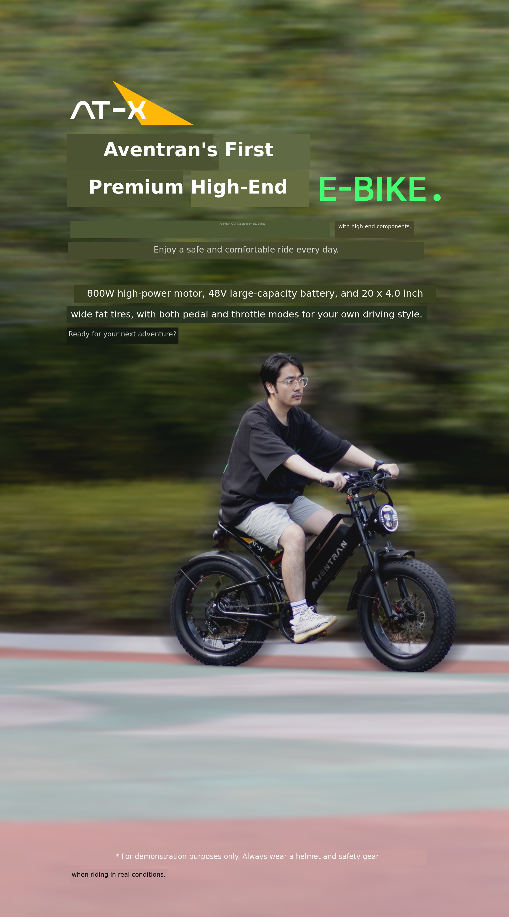 Discover Aventran’s premium 2025 AT-X E-BIKE with a powerful 800W motor and 48V high-capacity battery. Ride your way with pedal assist or throttle and start your personalized driving tour.