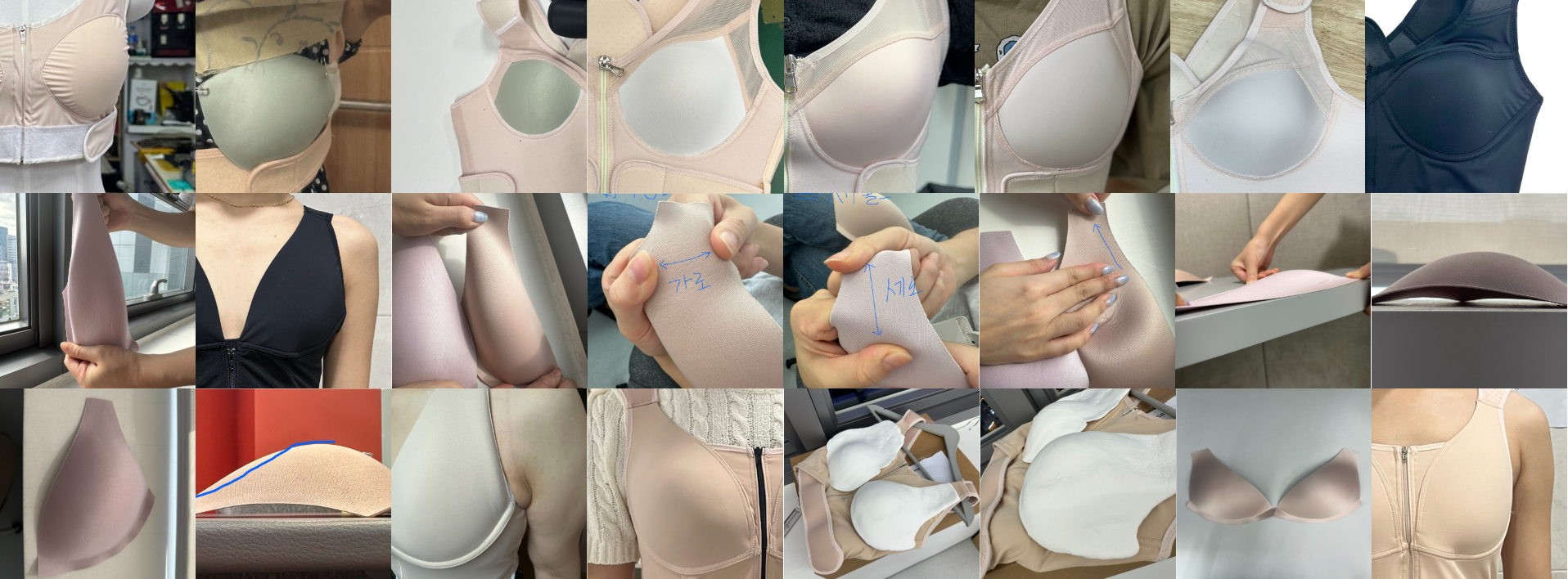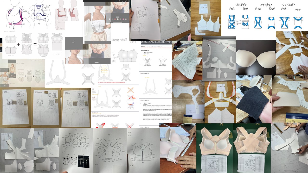 몰드개발하는데도 수많은 시행착오가 있었어요.. 일반 브라와 달리 자세 교정 기능까지 갖춰야 하다 보니, 시중에 있는 몰드로는 절대 원하는 결과를 얻을 수 없었죠. 새로운 몰드를 만들려면 금형 제작이라는 큰 산을 넘어야 했고, 그 비용은 상상을 초월했어요. 제품이 개선될 때마다 몰드도 함께 바뀌어야 했기에, 몇 번이고 금형 제작을 반복하며 눈물을 머금었던 기억이 생생합니다
