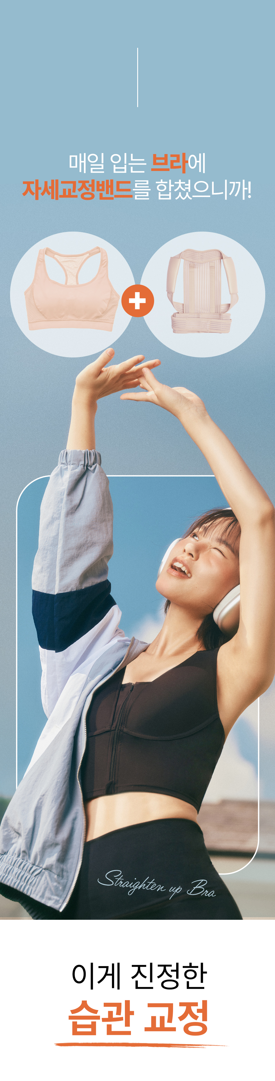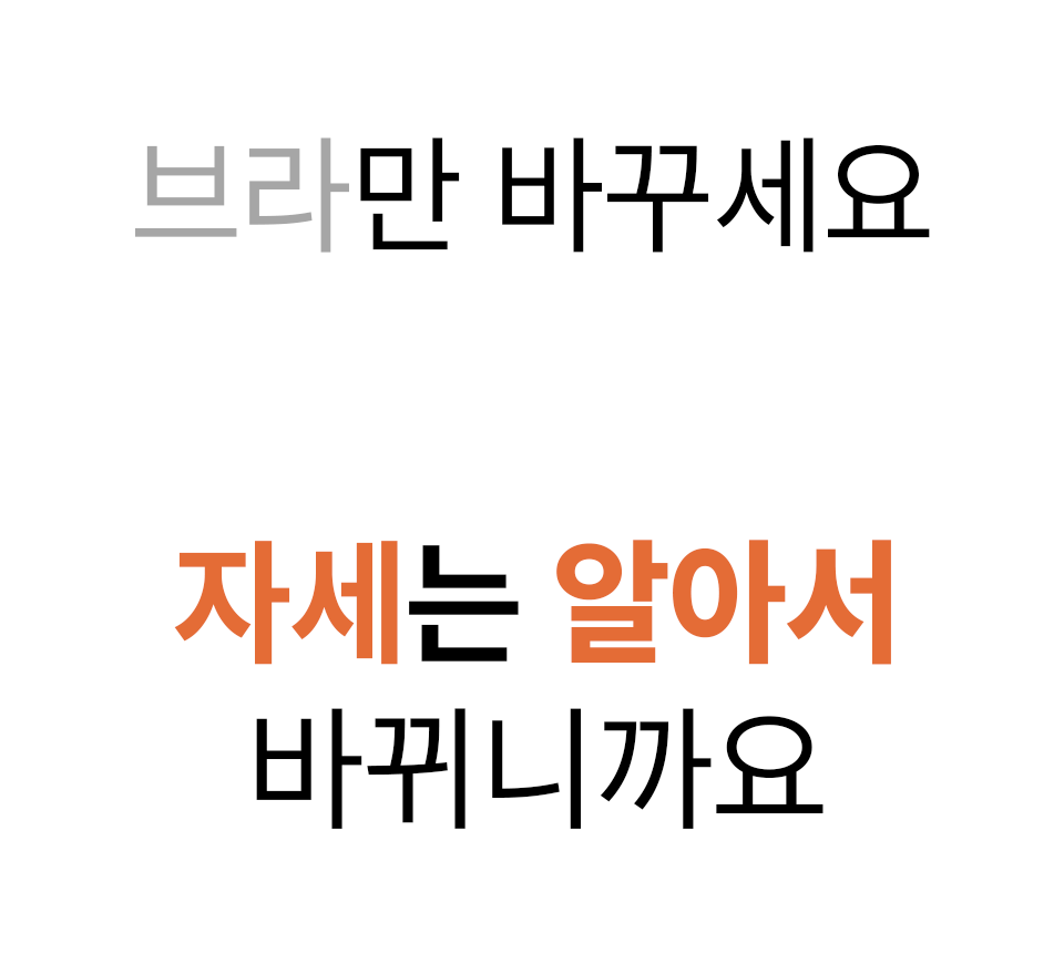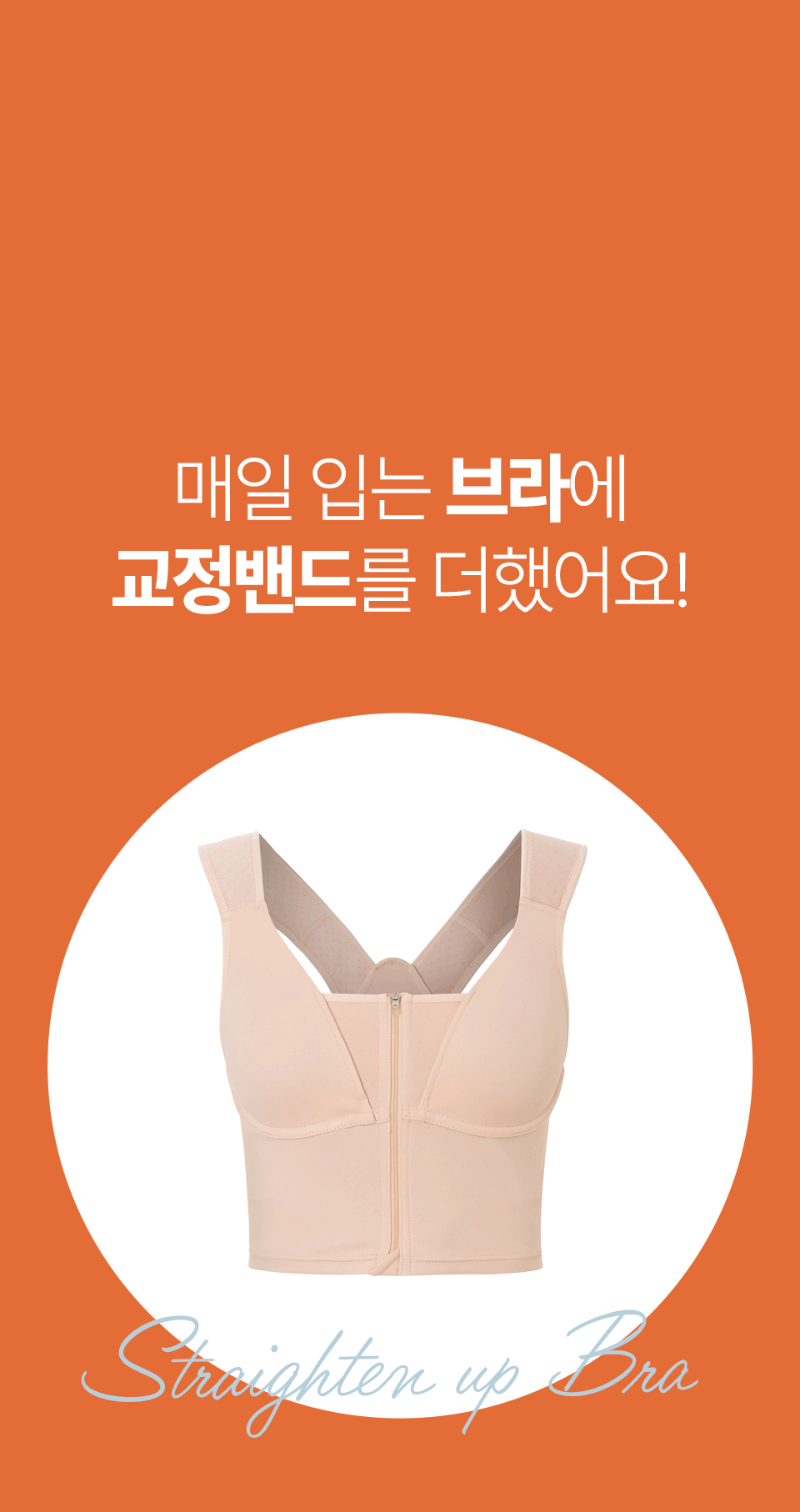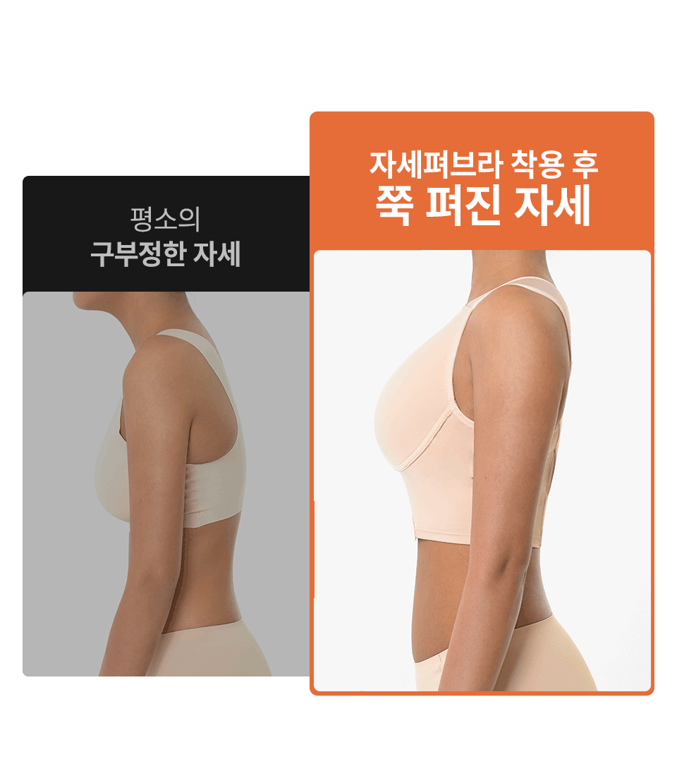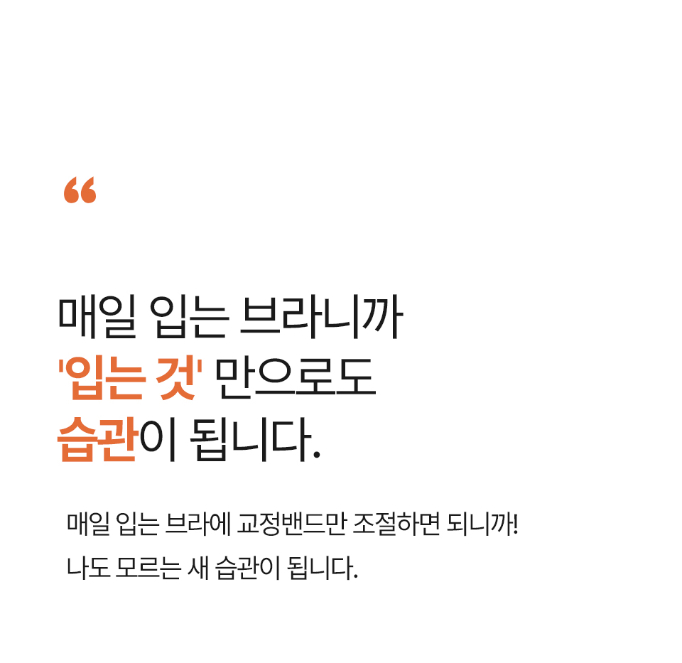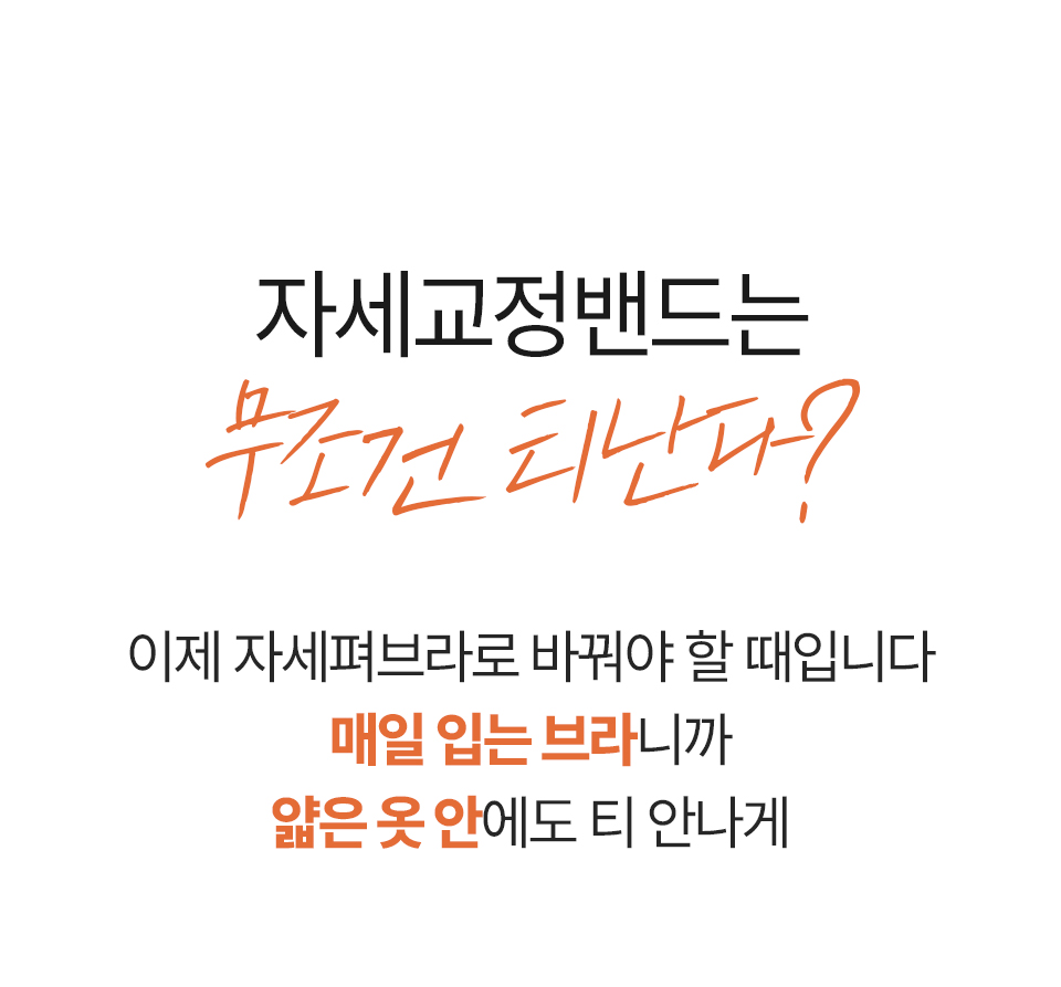저희 자세펴브라는 일상생활에서도 편하게 바른자세 습관을 만들 수 있도록, 매일 입는 브라에 교정밴드를 더했어요~