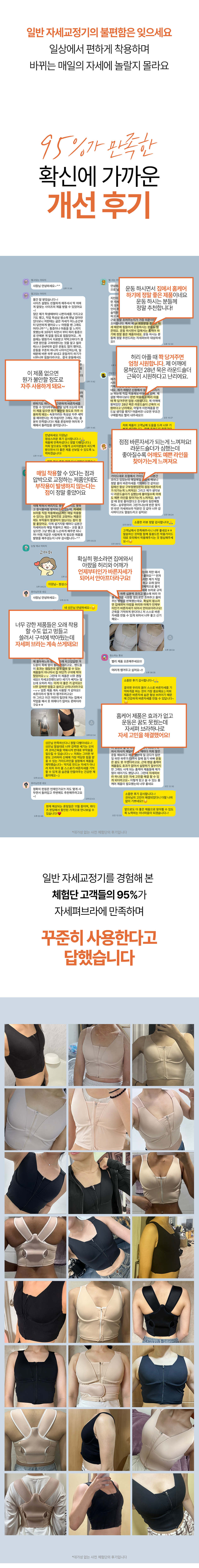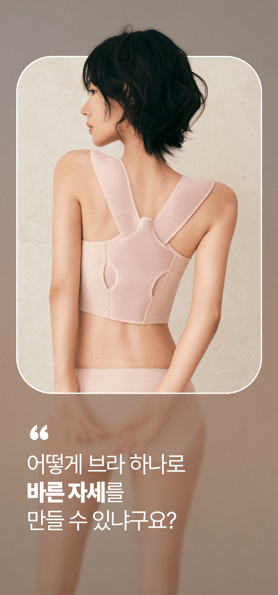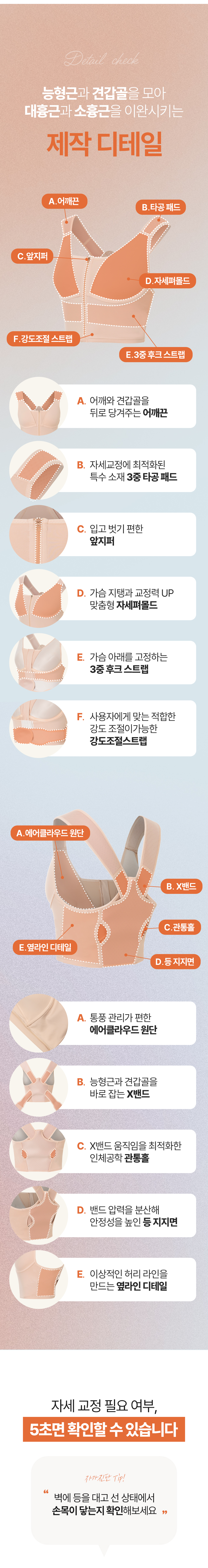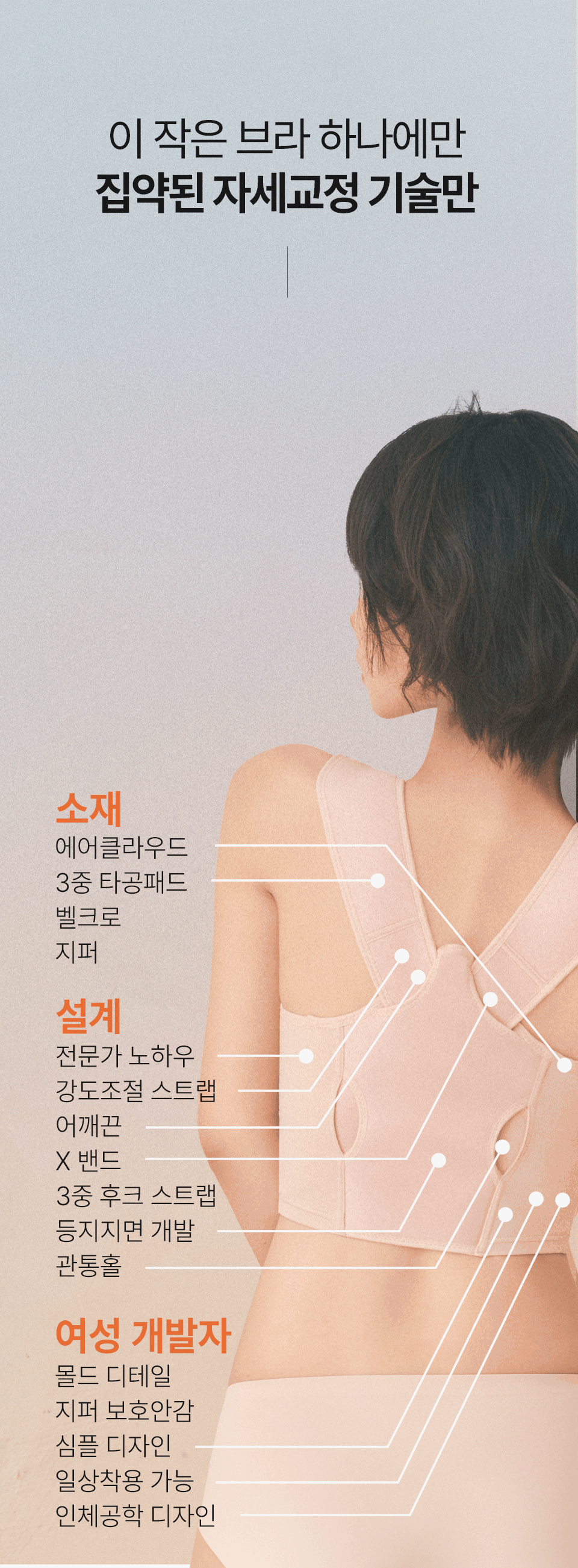 저희 자세펴브라는 일상생활에서도 편하게 바른자세 습관을 만들 수 있도록, 매일 입는 브라에 교정밴드를 더했어요~