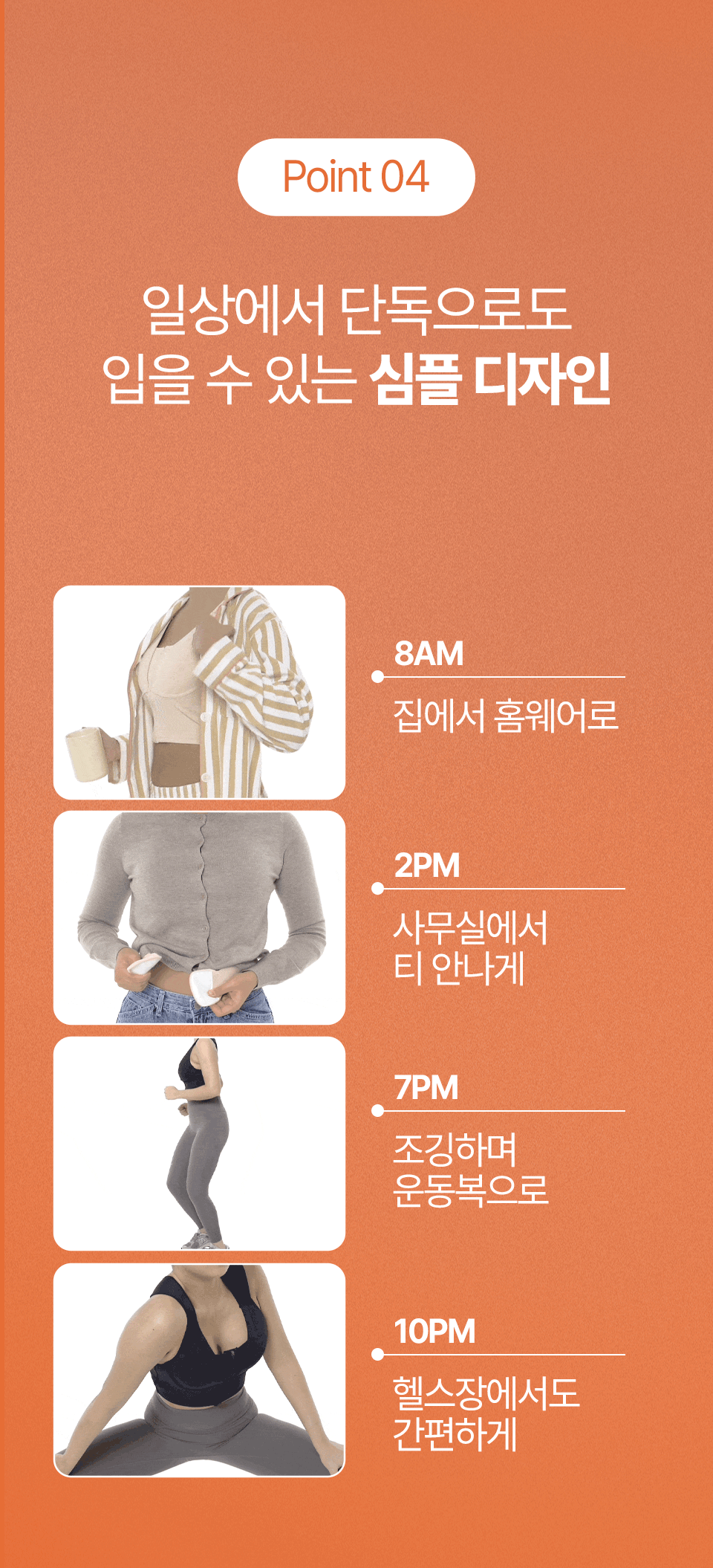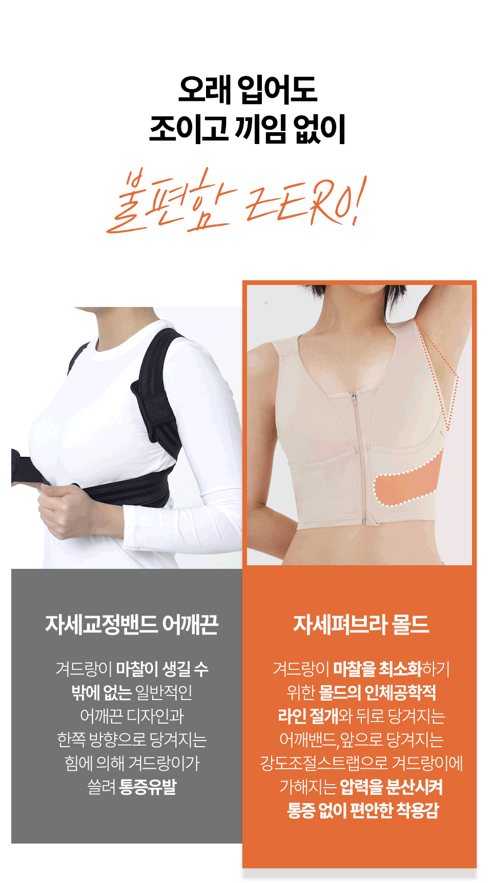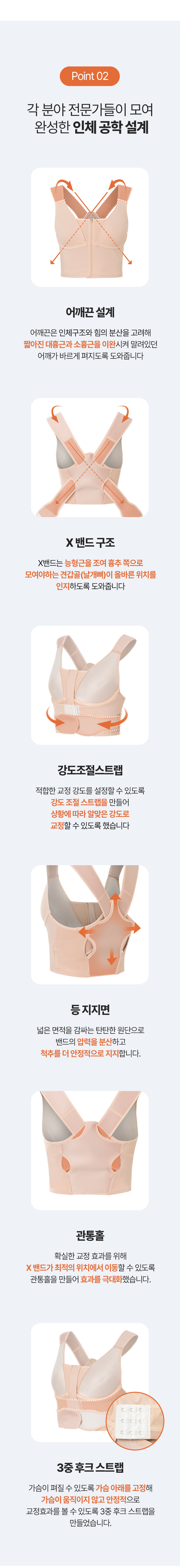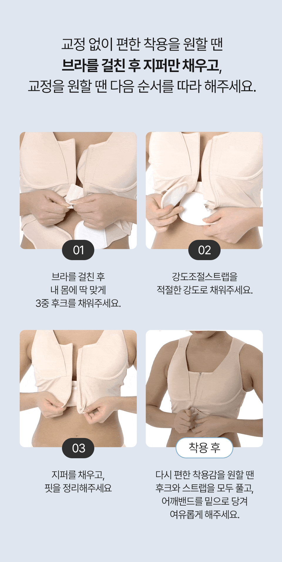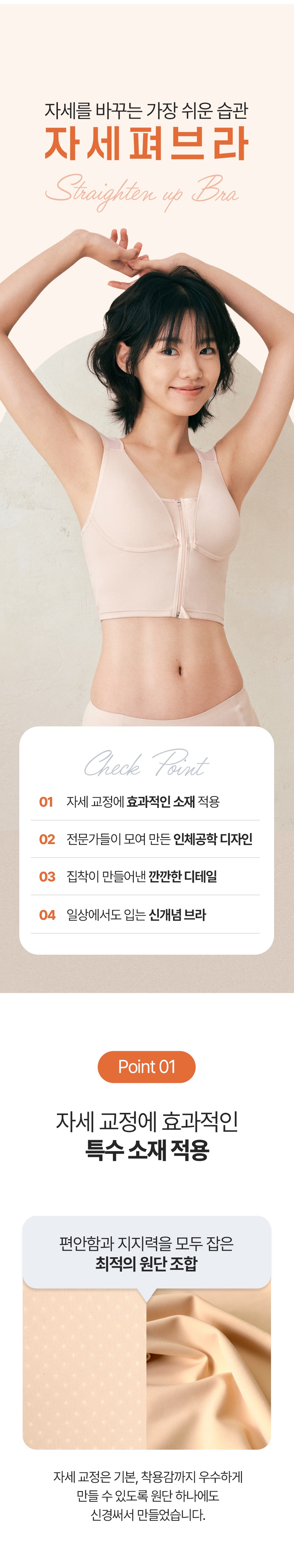 저희 자세펴브라는 일상생활에서도 편하게 바른자세 습관을 만들 수 있도록, 매일 입는 브라에 교정밴드를 더했어요~