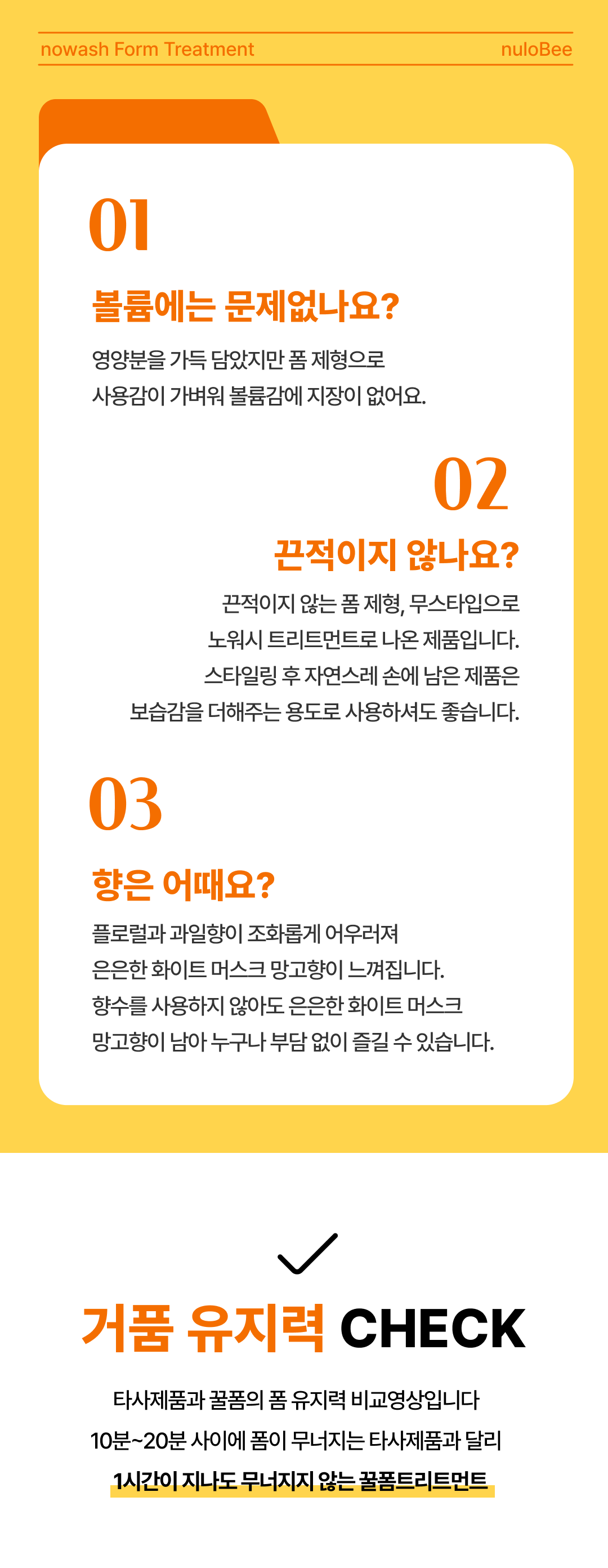 ☑️ 인텐시브한 케어를 원한다면 누로비 꿀폼트리트먼트를 사용 후 모발을 건조 시키고 한 번 더 사용해주세요.