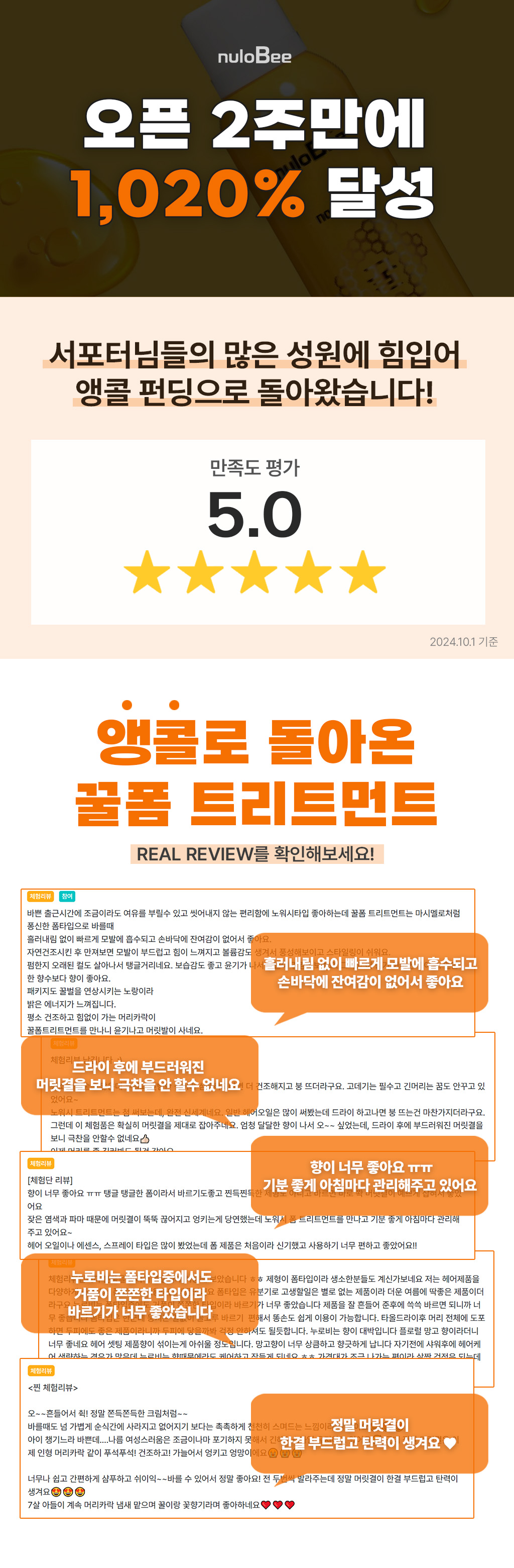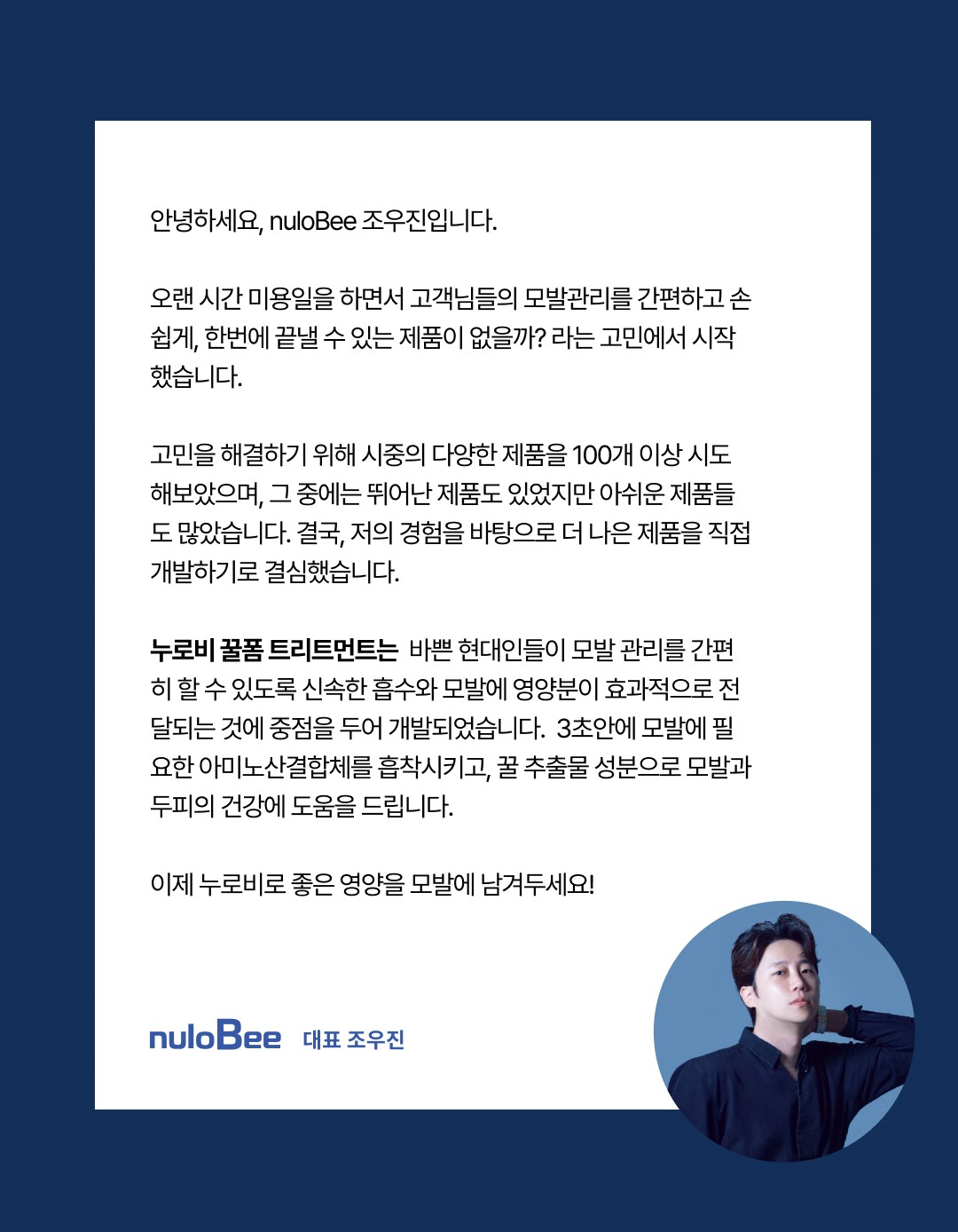 누로비 꿀폼트리트먼트 하나로도 "정말 좋아진 머릿결"을  만나보실 수 있어요.