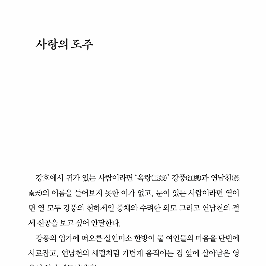그런 제가 고룡 작가의 작품을 제대로 만난 것은 2019년 코핀북스의 출판팀장이 되어 『다정검객무정검』의 원고를 접하면서였습니다. 고룡의 작품은 매력적인 캐릭터와 반전을 거듭하는 스토리, 그리고 무엇보다 인간의 선한 본성에 대한 흔들리지 않는 믿음이 깊이 배어있었습니다.