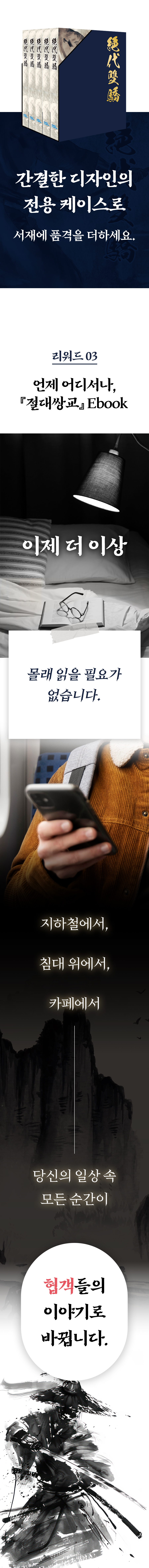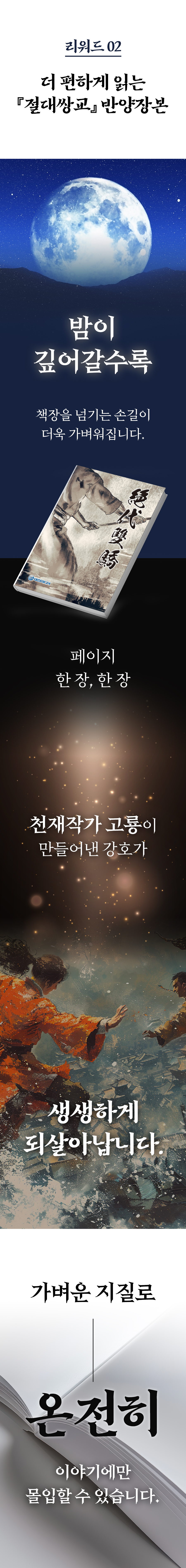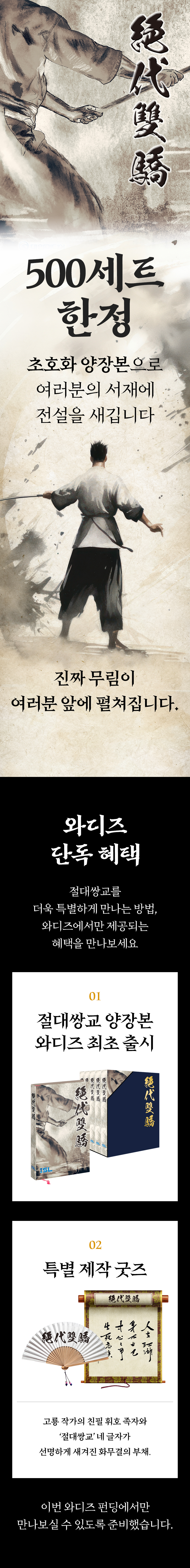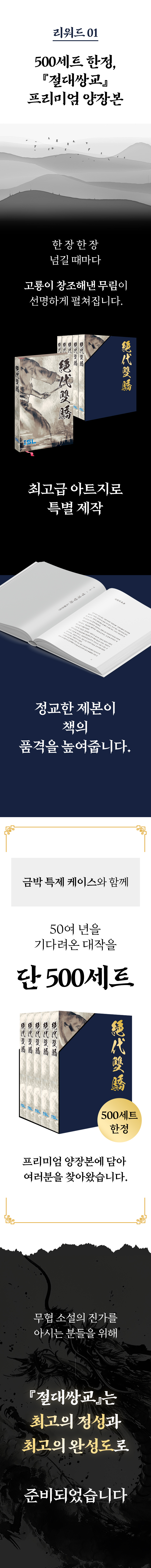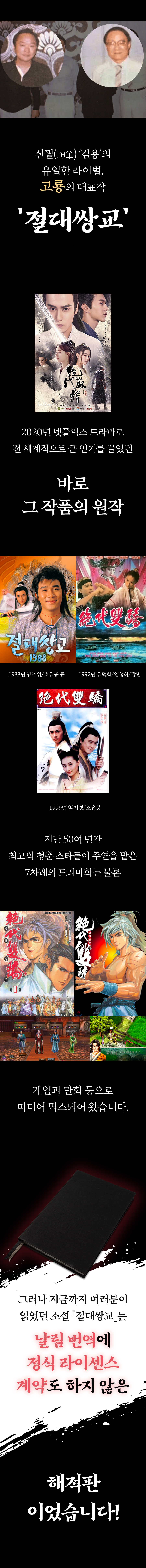 이번 펀딩을 통해 기존에 고룡 작가를 사랑하는 무협 팬들은 물론, 처음 무협 소설을 접하는 독자들도 그의 매력에 흠뻑 빠질 수 있는 기회가 되었으면 합니다.