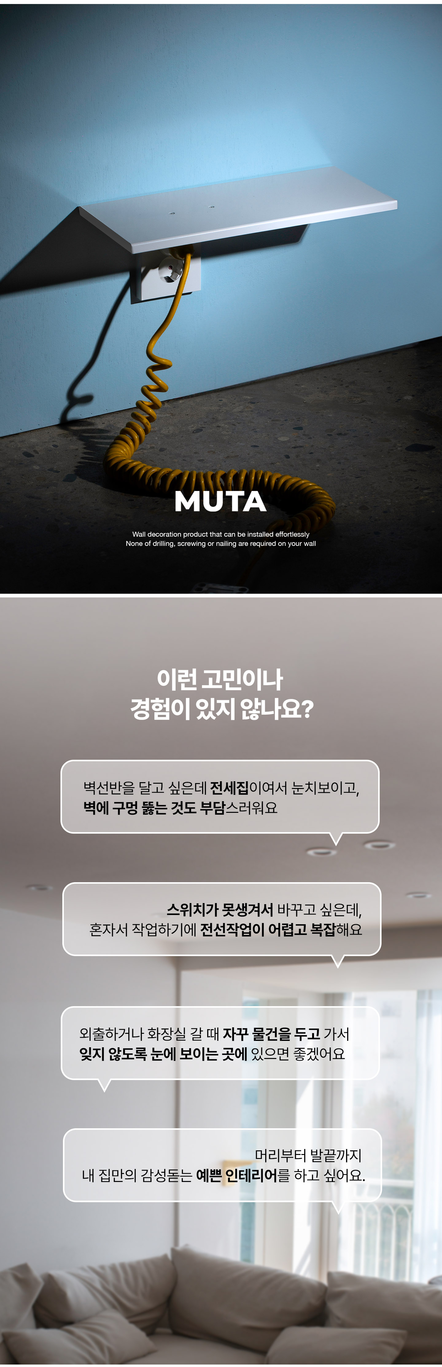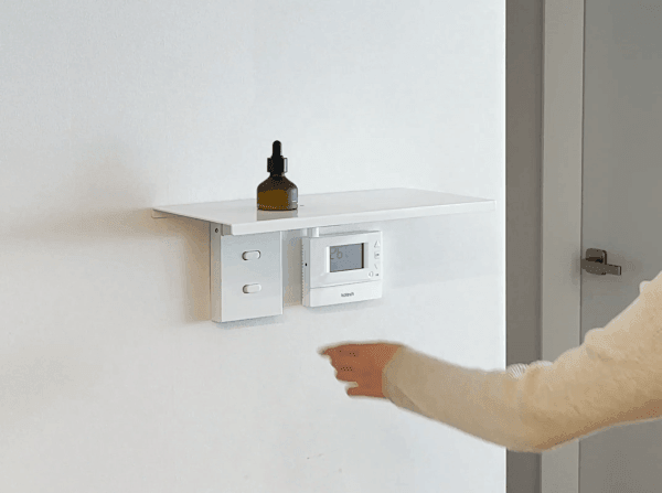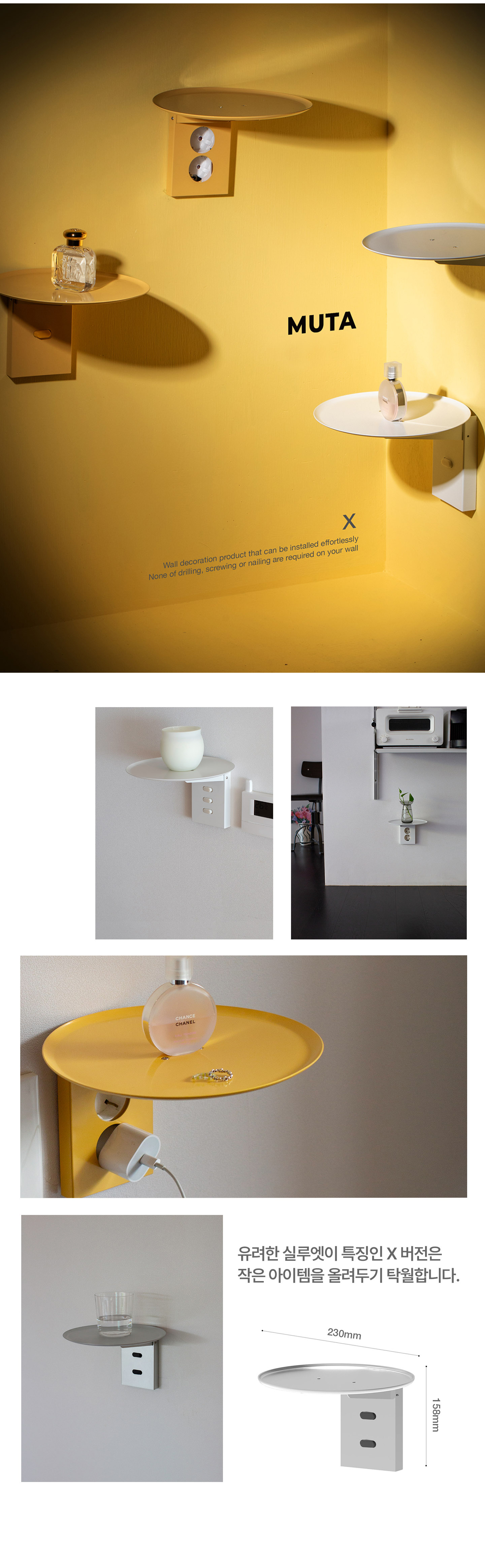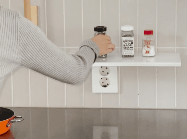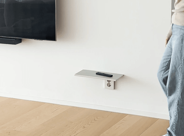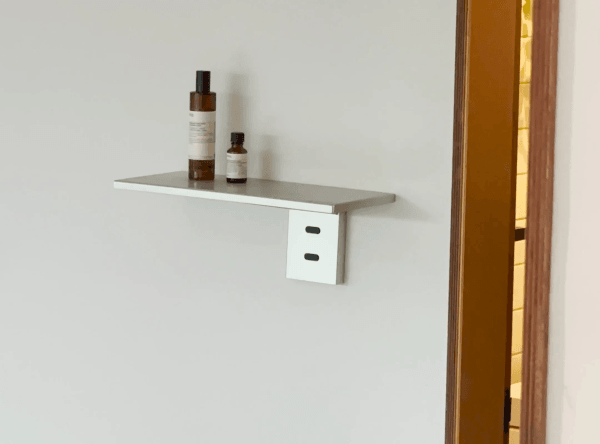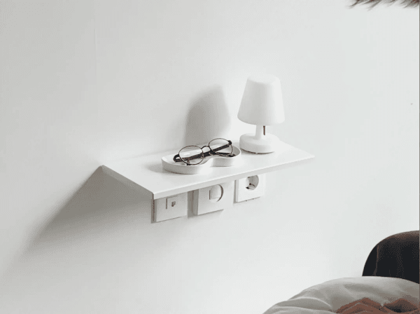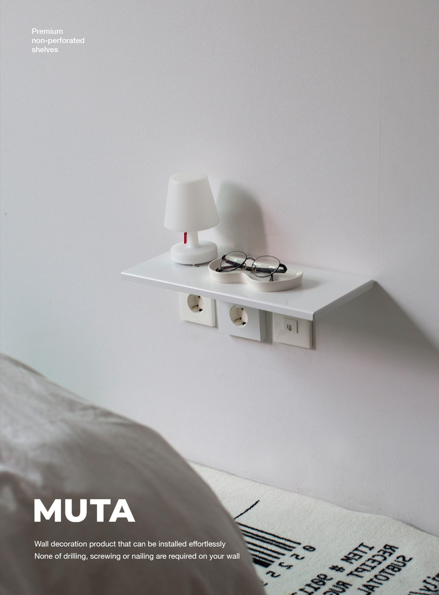 Transform old unattractive switches or outlet covers by hanging the Muta cover shelf that highlights your style. The no-drill Muta cover shelf makes installation effortless for anyone.