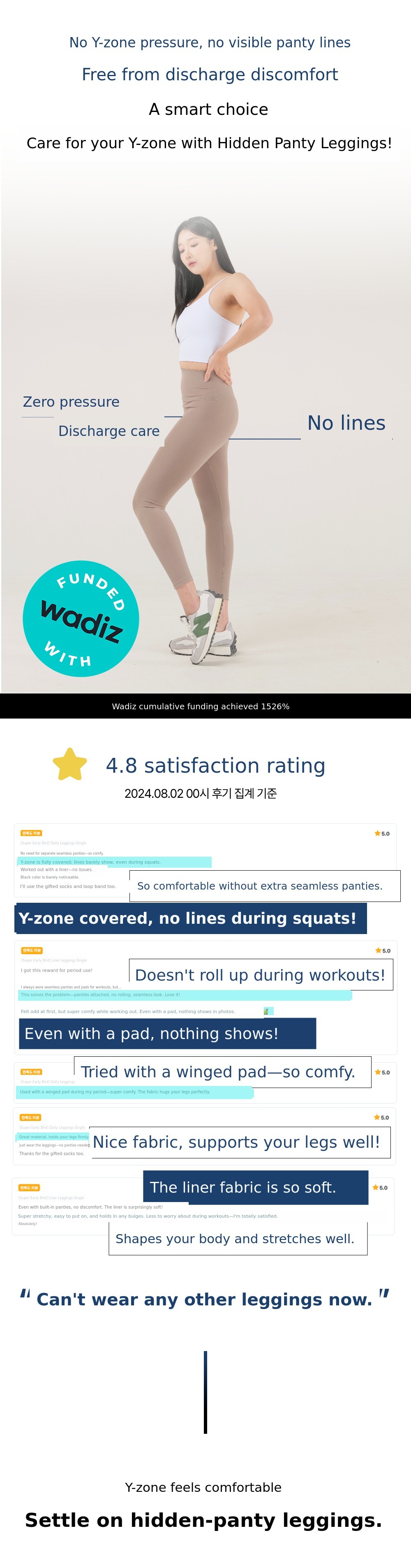 Hello, we are FLOWS, a femtech sportswear brand specialized for women. Thanks to the support from our backers, we are launching an encore crowdfunding campaign. The Hidden Panty Leggings is FLOWS' first project, proposed as a solution to everyday discomforts that women commonly experience. We collaborate with a pattern director with over 30 years of experience, and manufacture 100% domestically in a Korean athleisure/underwear factory with over 30 years of expertise. The funds raised will be used for product development R&D, reflecting feedback from our supporters. We chose Wadiz because it is home to many supporters who have a high demand for fresh and innovative products.
