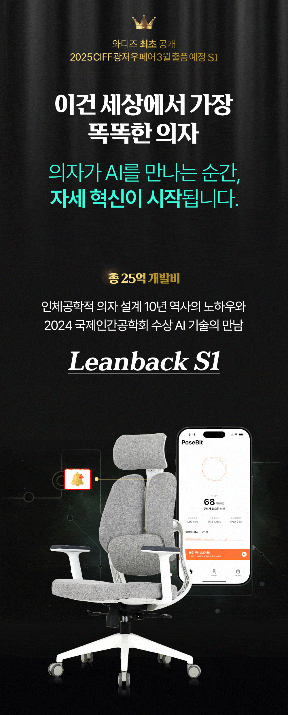 스마트한 의자를 가장 스마트한 소비를 하시는 서포터님들께 먼저 선보이기 위해 와디즈에서 선공개 합니다.