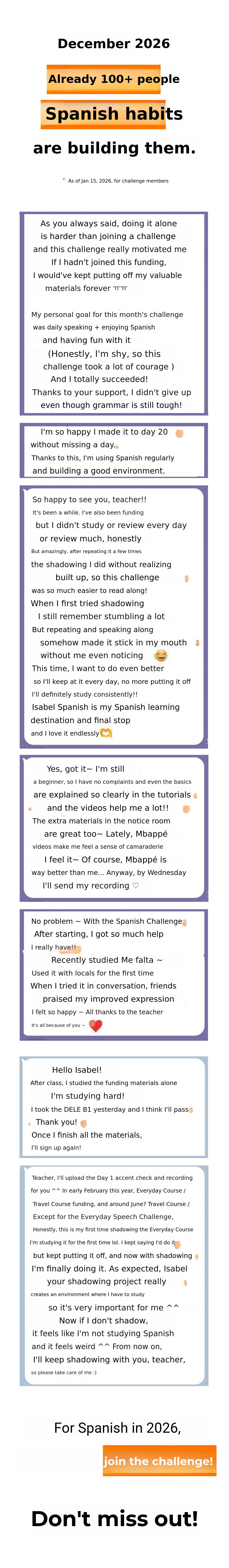 This is the script of the video. After doing dictation,use it only for answer checking. It is written in uppercase letters to make it harder to see while doing dictation. You probably couldn't hear everything clearly. Listening to and speaking Spanish is completely different from reading comprehension. That's okay. Once we start learning Spanish expressions, you will definitely be able to hear them.