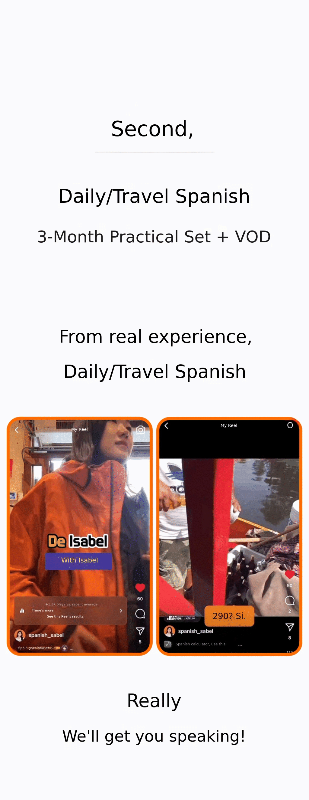 A. The ClassU <Life Spanish> course also includes 10 basic shadowing sessions. 1:1 feedback is provided. I recommend starting with the lecture.