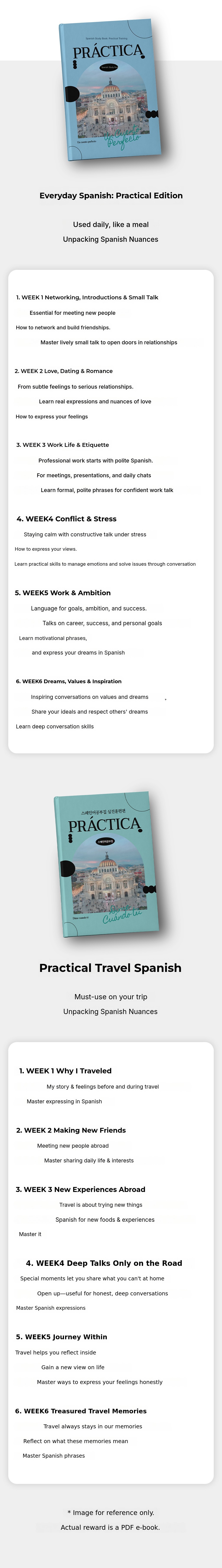 2) Practical Section (Spanish videos + including Latin American audio) 6-month SET about 300 pages.