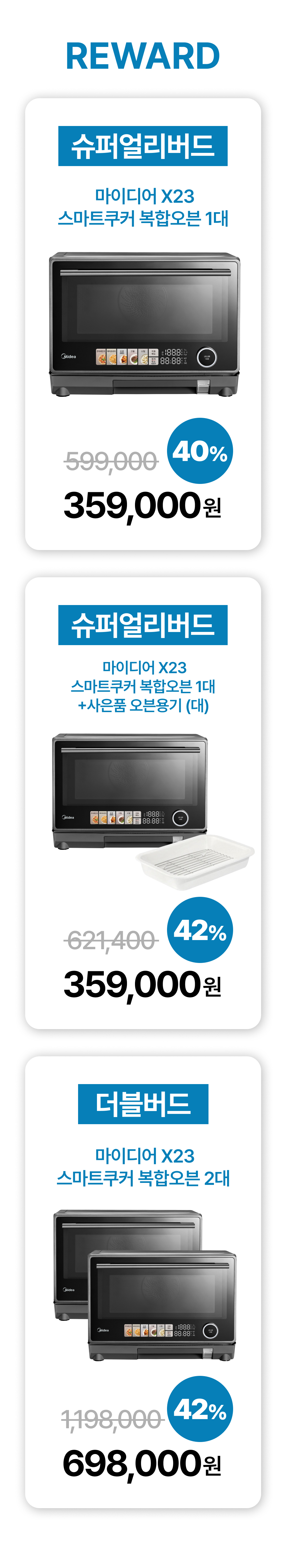 마이디어는 이번 X23 4in1 스팀복합오븐 펀딩을 통해 서포터분들과 직접 소통하며, 브랜드의 가치를 전하고자 합니다. 저희는 와디즈를 단순한 판매 플랫폼이 아닌, 서포터분들과의 신뢰와 소통을 바탕으로 더 나은 제품과 아이디어를 함께 만들어가는 파트너십의 공간으로 생각합니다.