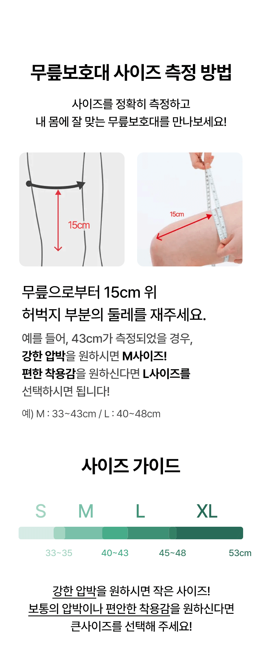 이 무릎보호대는 종아리부터 무릎까지 단단히 감싸주어 안정적인 지지를 제공하며, 4way 스포츠 테이핑 기법으로 좌우는 탄력적으로, 상하는 견고하게 잡아주어 흘러내림 없이 편안한 착용감을 선사합니다. 또한 포름알데히드 등 유해물질이 검출되지 않은 원단을 사용해 피부 트러블 걱정 없이 착용하실 수 있도록 정성을 다했습니다.