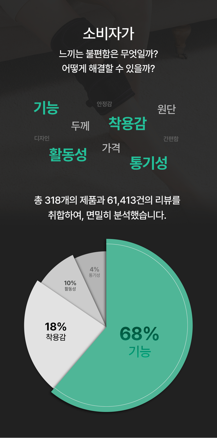 이제 저와 같은 고민을 했던 분들께, 하루 종일 착용해도 무겁지 않고 무릎을 든든하게 지지해주는 보호대를 선보이게 되어 큰 책임감과 함께 설렘을 느끼고 있습니다.