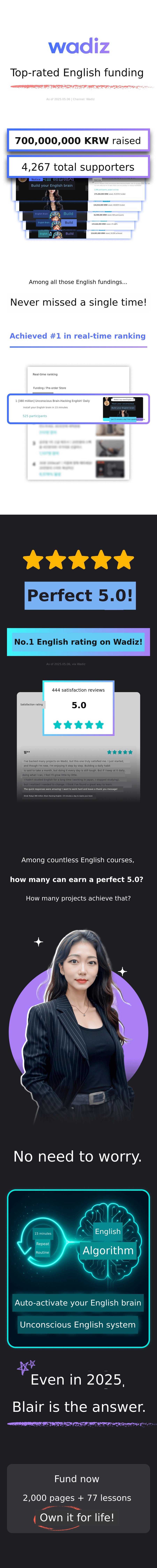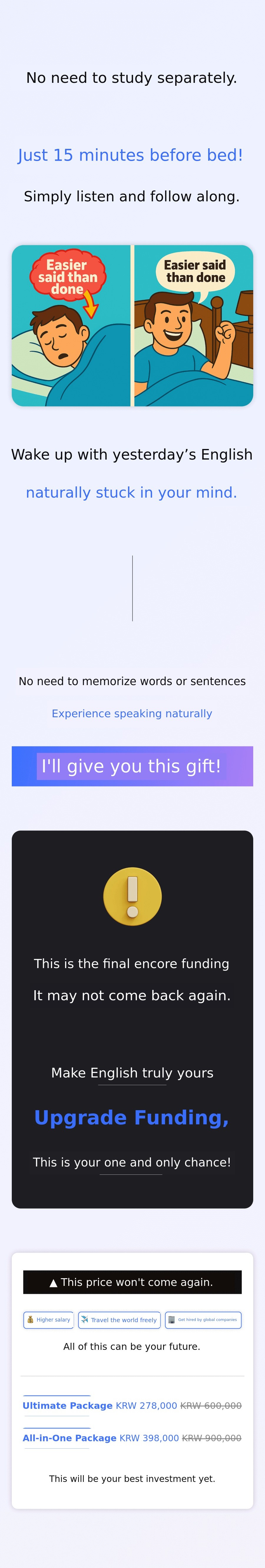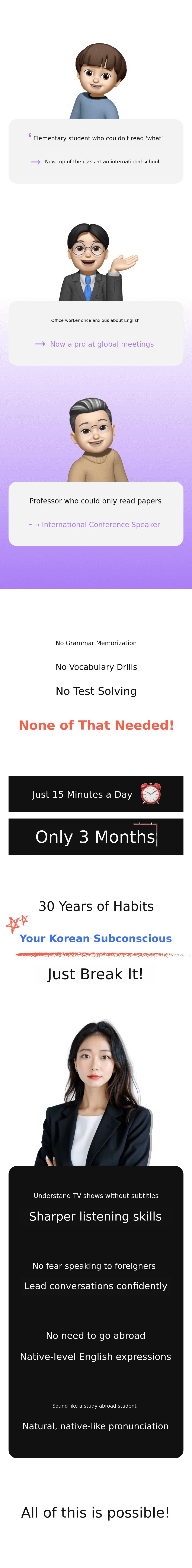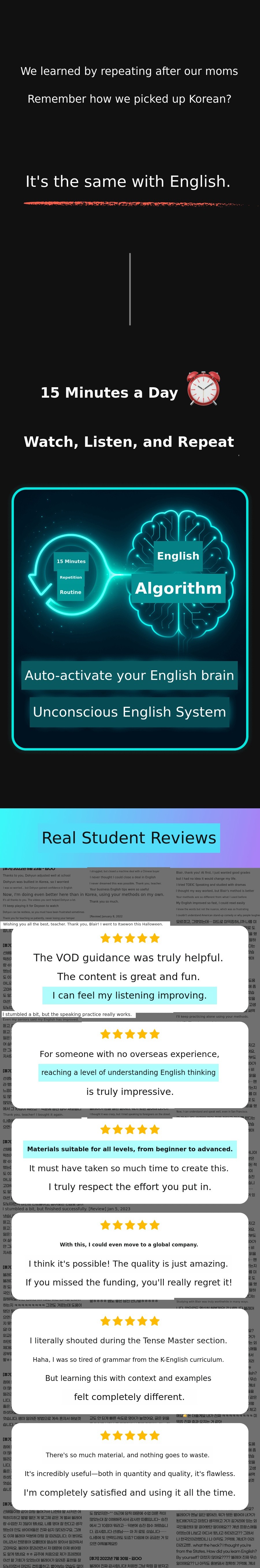 Now, I want to introduce this innovative 'Unconscious English Learning Method' to a wider world. This crowdfunding project is not simply about selling educational content. Through my passion and the success stories of my students, it is a project thatoffers new hope and possibilities for English learning.