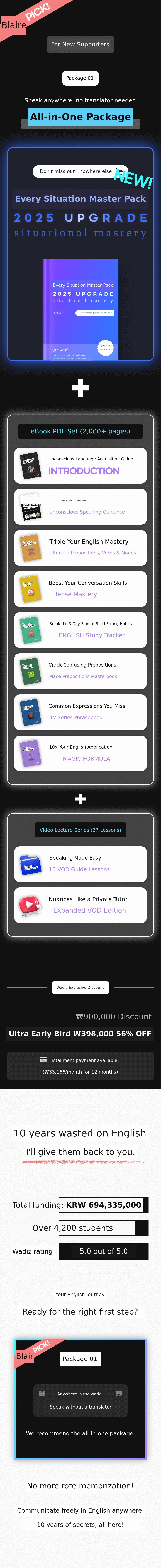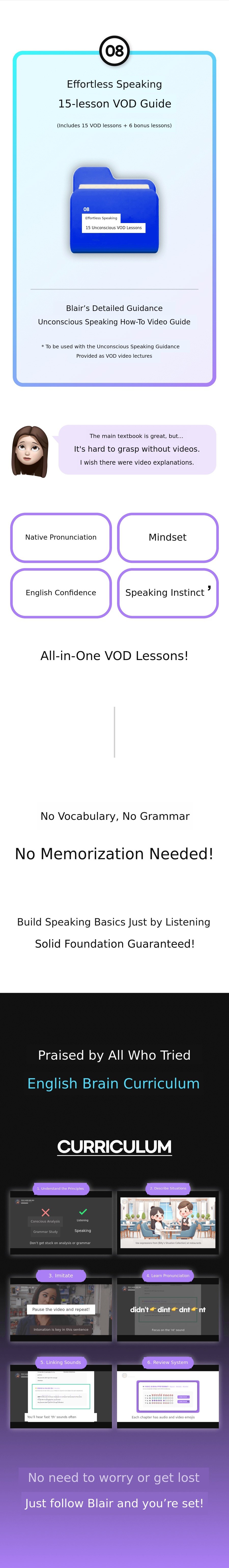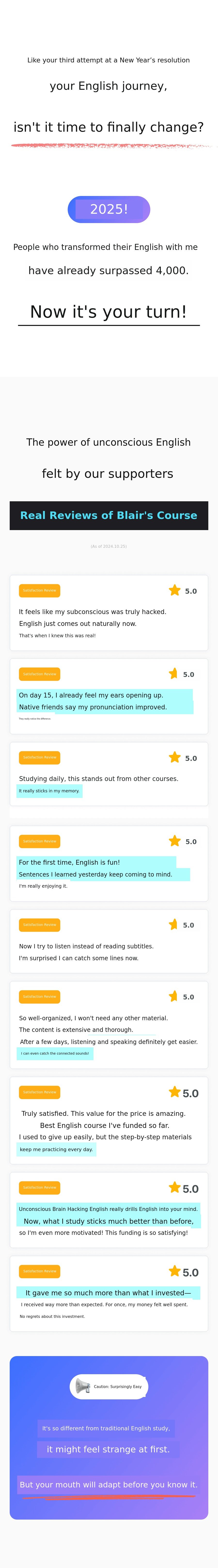 'Unconscious English Learning Method' Through this innovative method, more people canovercome the barriers of English conversation, gain confidence, and experience a new world. This is why I am passionate about this project and thecore message of the Blair Project This is.