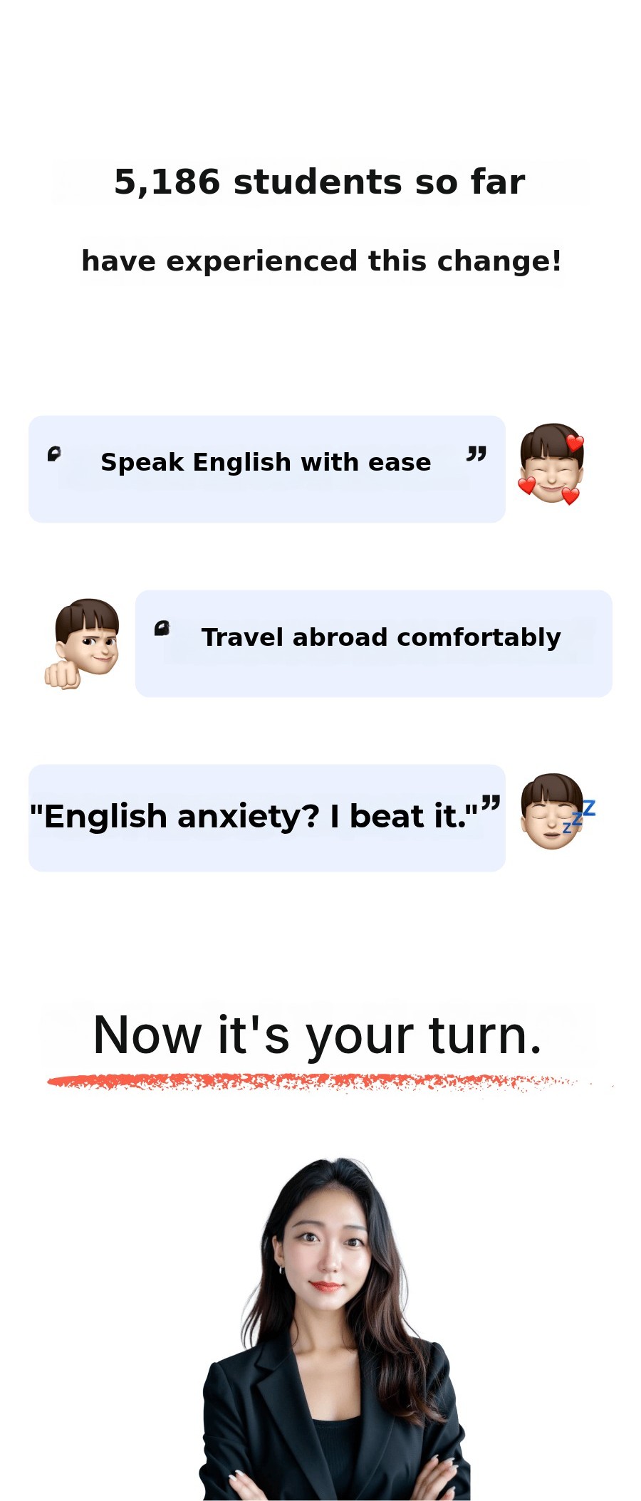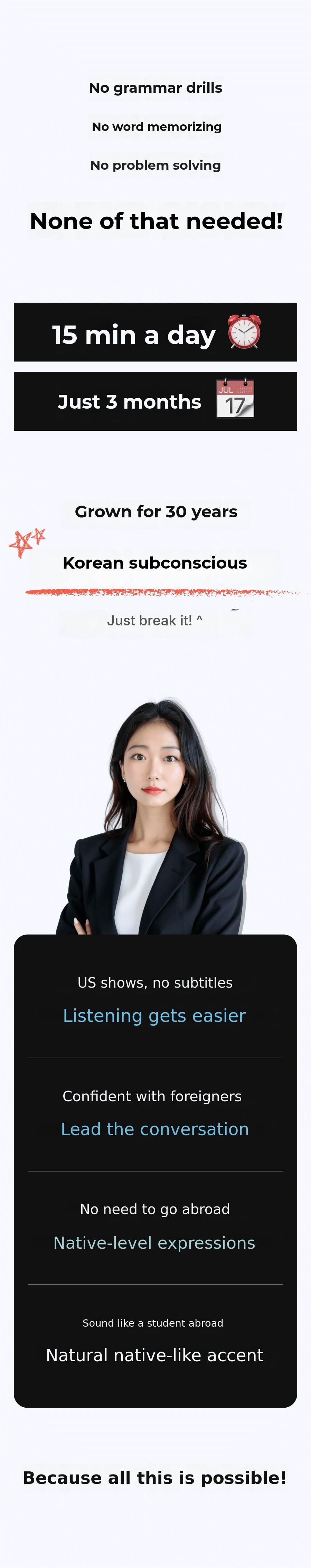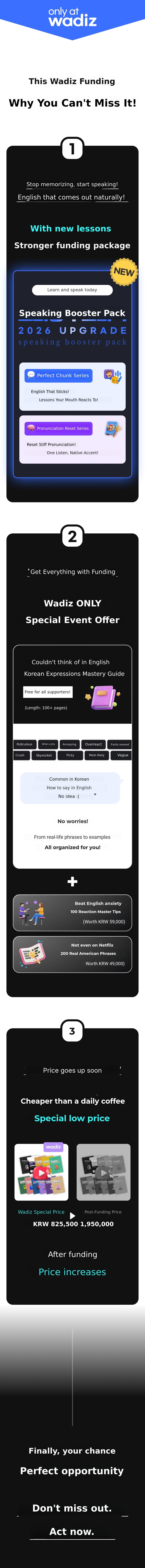 Now, I want to introduce this innovative 'Unconscious English learning method' to a wider world. This crowdfunding project is not simply about selling educational content. Through my passion and the success stories of my students, I want topresent new hope and possibilities for English learning to many people.