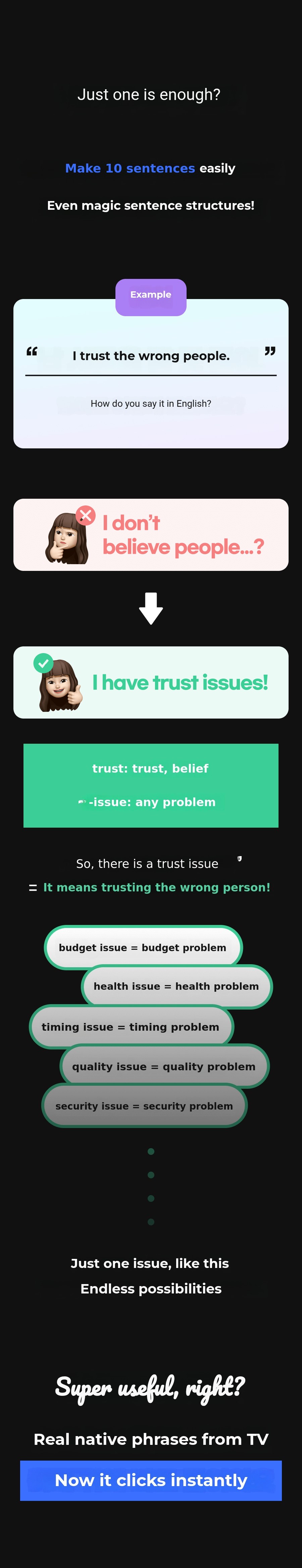 "If you just memorize like this, you'll forget it quickly and won't be able to say a word in real life, so what's the point of all this?"