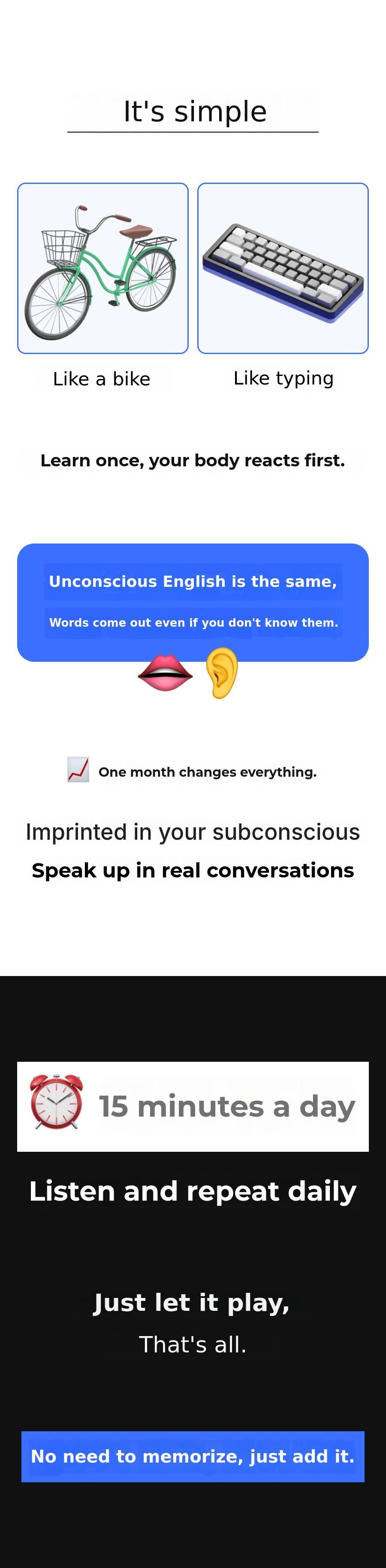 The funds raised through this crowdfunding project will be used tofurther develop the 'Unconscious English Learning Method' with morediverse and rich materials. The main goal is to make the current 'Unconscious English Learning Method' even moreeffective and accessible. Therefore,new content development and improvement of existing content will be the main focus of our spending.
