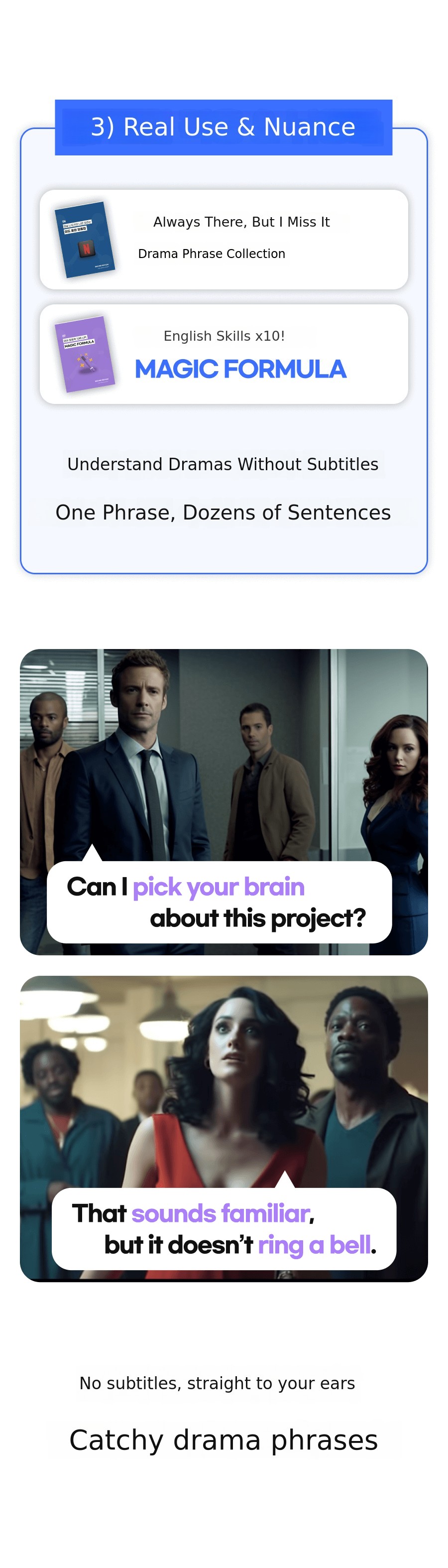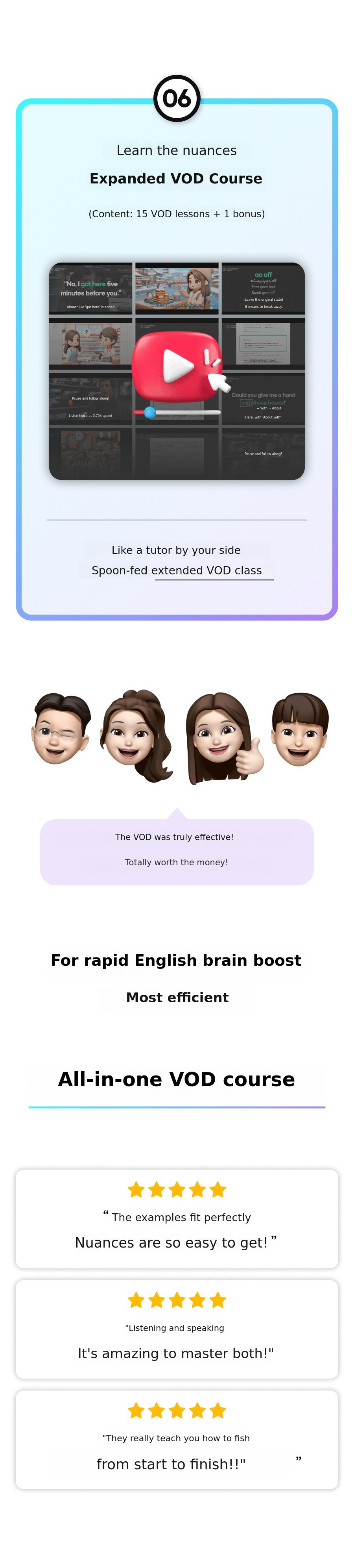 In addition, to ensure that all learners who experience this method can havean even richer experience, we plan to additionallyA variety of learning materials will be created. So that learnersdo not feel burdened by English even more to help them learn in a more fun and effective way is our goal!