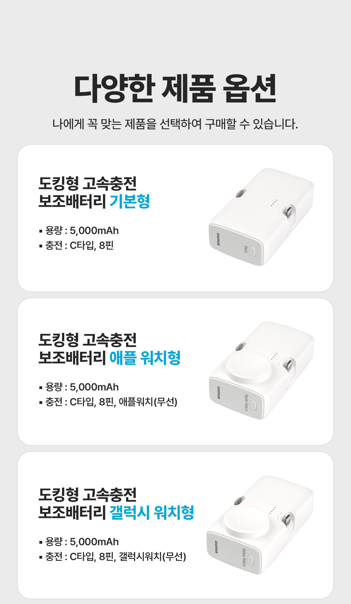 안녕하세요. 아이코모스입니다. 스마트기기들이 필수 생활용품으로 자리 잡고 있는 요즘, 일상생활에서 더욱 편리하게 사용할수 있는 제품들을 출시하고자 몰두하고 있는 7년차 아이코모스입니다. 저희는 편리해질수 있는 상품을 지향하며 저희 제품을 접하는 모든 분들께 만족을 충족시키기 위하여 노력하겠습니다.