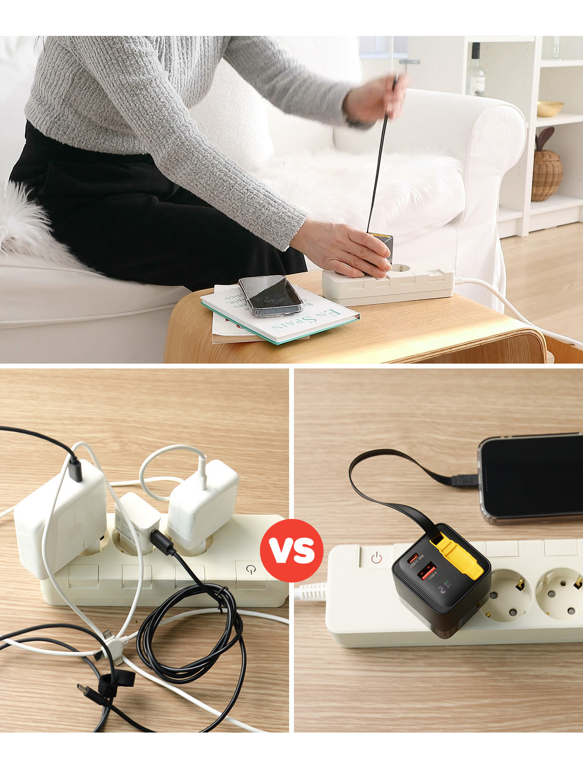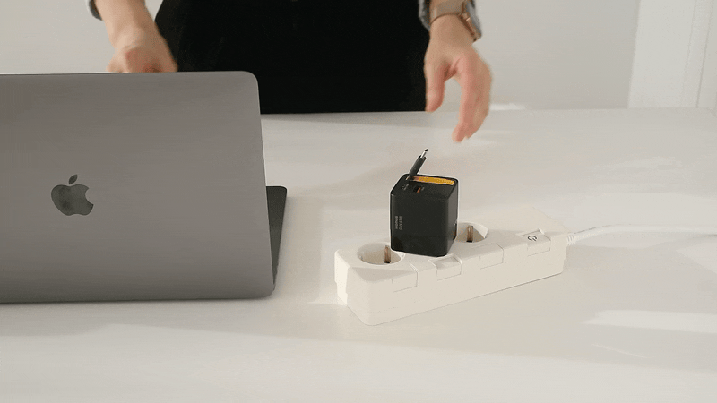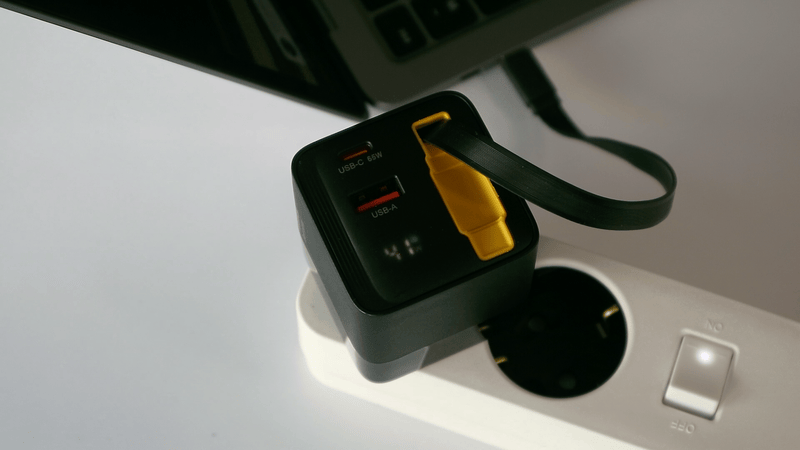 Say goodbye to clutter with this reel-type built-in cable charger. Enjoy 65W PD ultra-fast charging simultaneous power for 3 devices (2 Type-C 1 Type-A) ultra-light 166g design LCD display and PPS support.