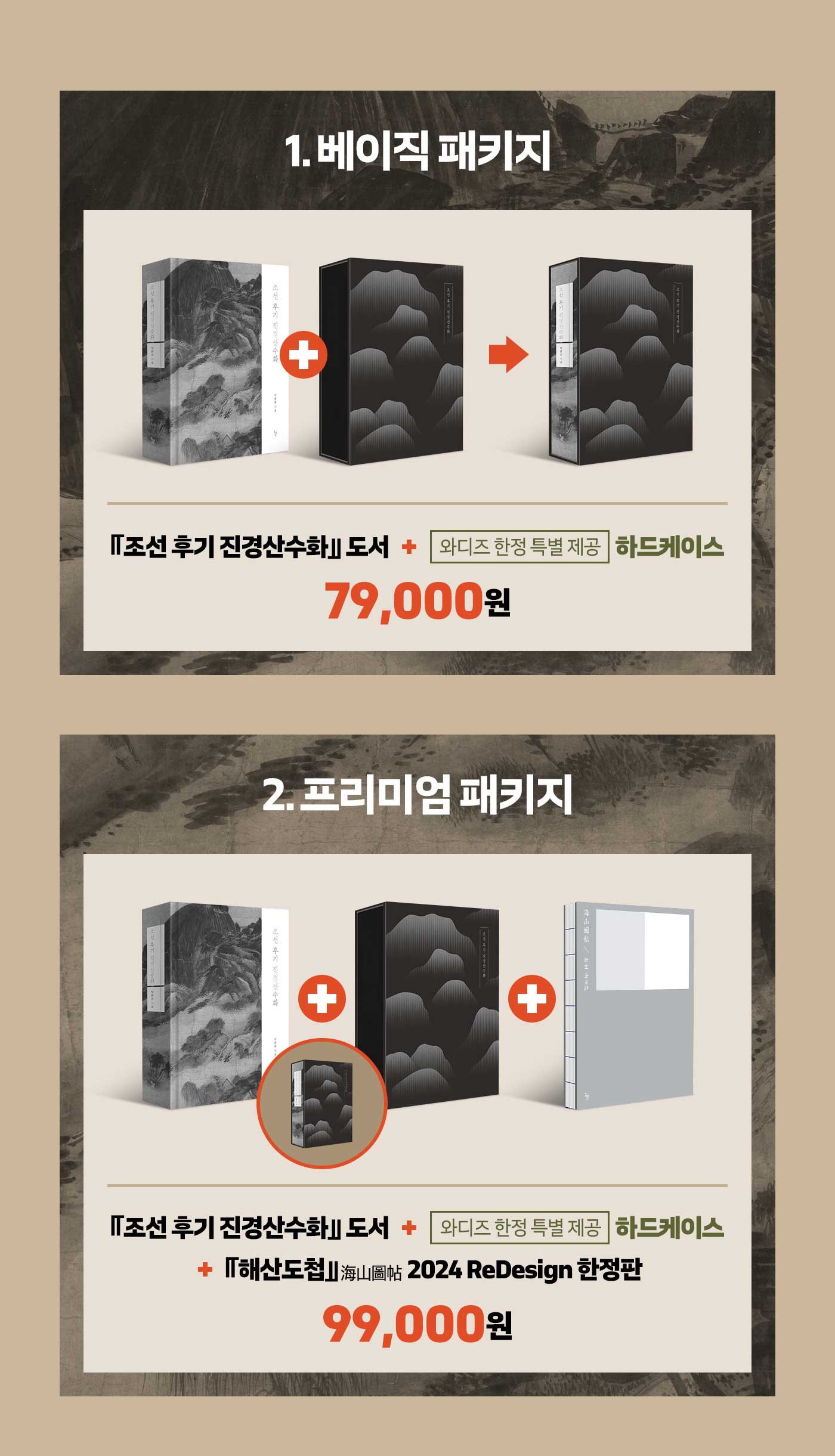 2. 프리미엄 패키지 : 도서 정가 79,000원 + 특별 하드케이스 증정 + 『해산도첩』 한정판 굿즈 20,000원 = 99,000원