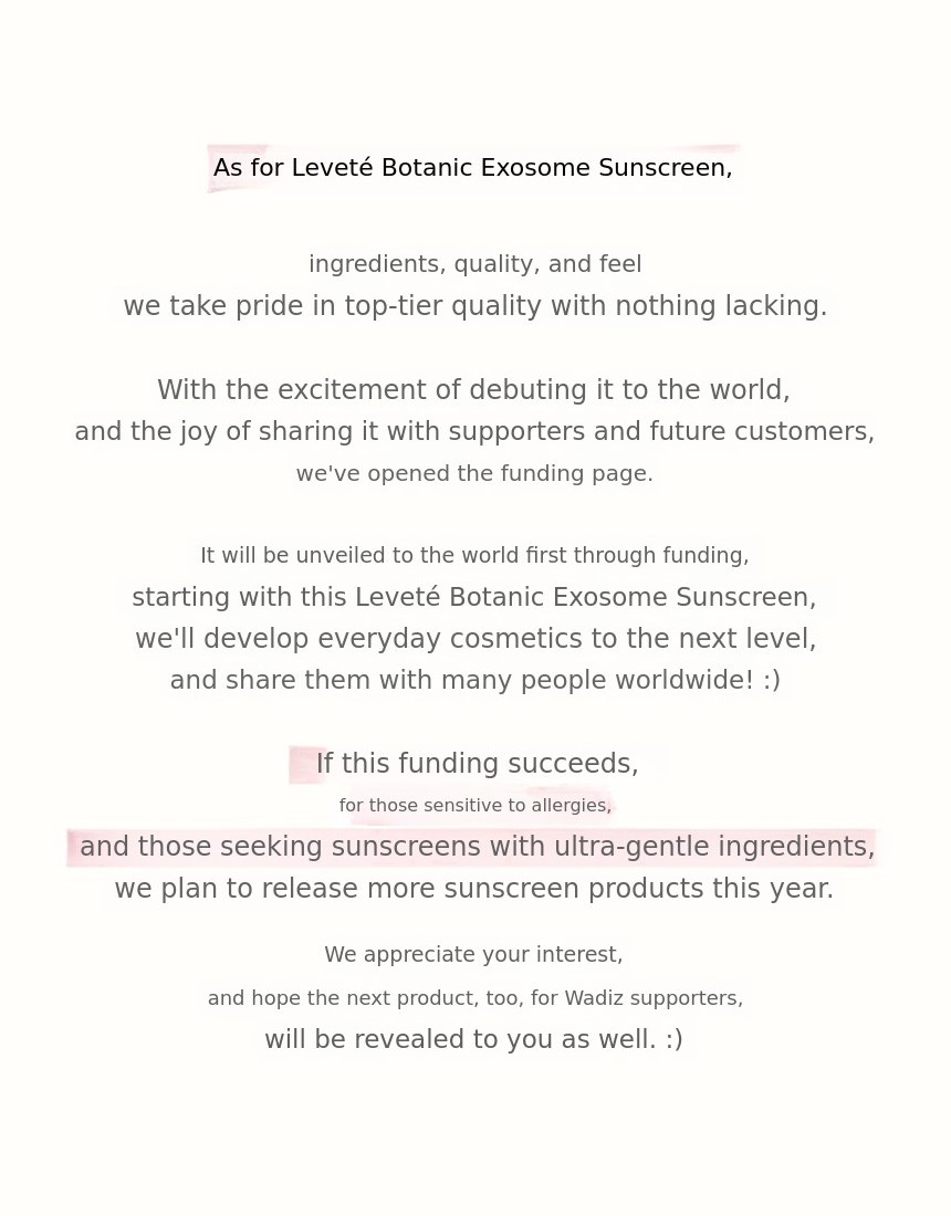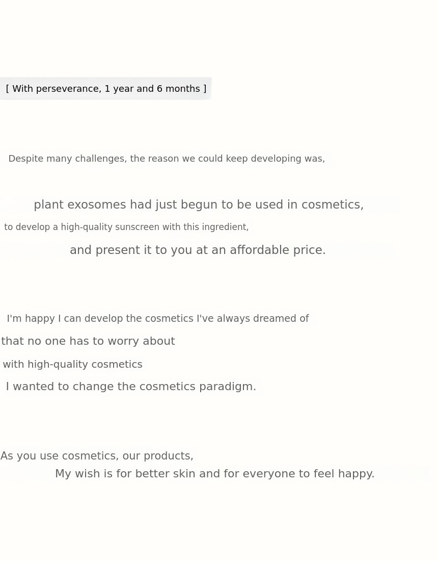 As a Cica Exosome Sunscreen, we focused on functional cosmetics, and we thought it would be even better if positive evaluations from Wadiz supporters could reflect the quality of our products.