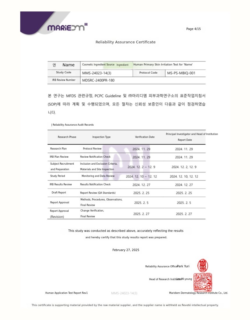 -> Sunscreen "finished product" also [ Low irritation ] certified.