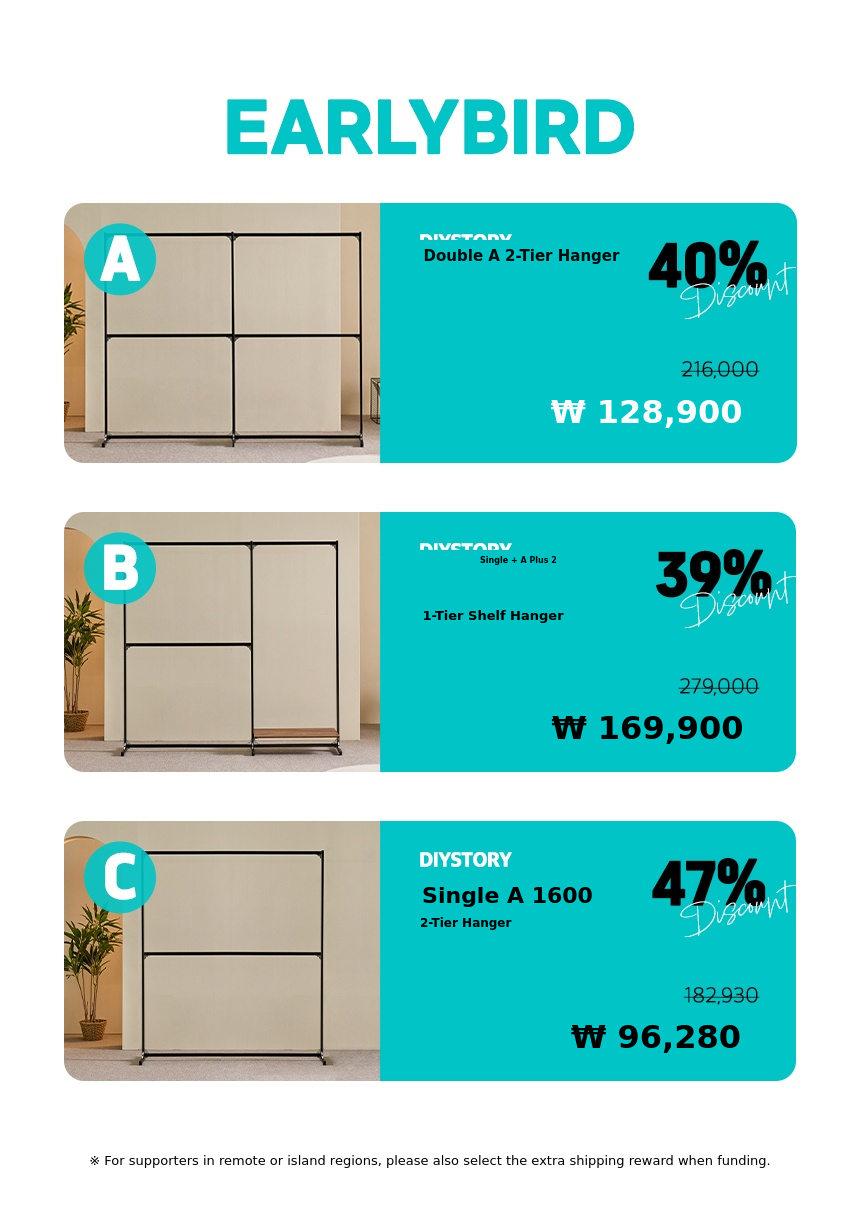 1. 🛠️ Patented Steel Assembly Hanger - Durable domestic steel and patented bracket ensure stability 2. 🏠 Practical Interior Storage Solution - Easy assembly, disassembly, and reassembly for flexible use 3. 🎁 Exclusive 47% Discount on Wadiz - Limited quantity with super early bird and early bird offers