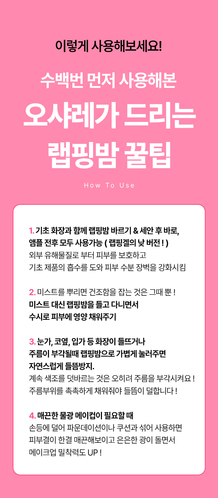 기초화장 후 마무리단계에 바르시거나 크림 대신 밤으로 마무리를 하셔도 괜찮고