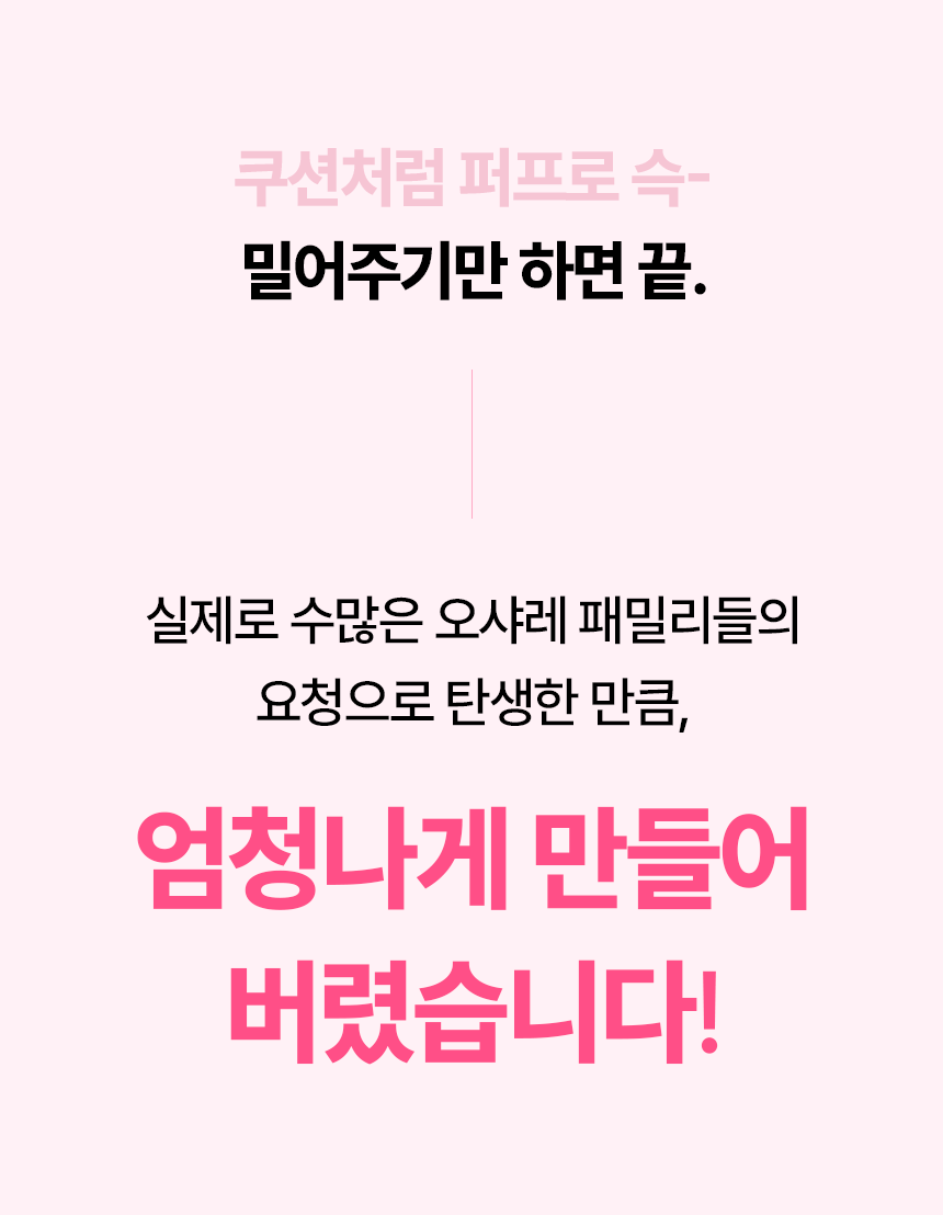 다만 동봉된 퍼프를 이용하신다면 더욱 편하게 사용가능하십니다.