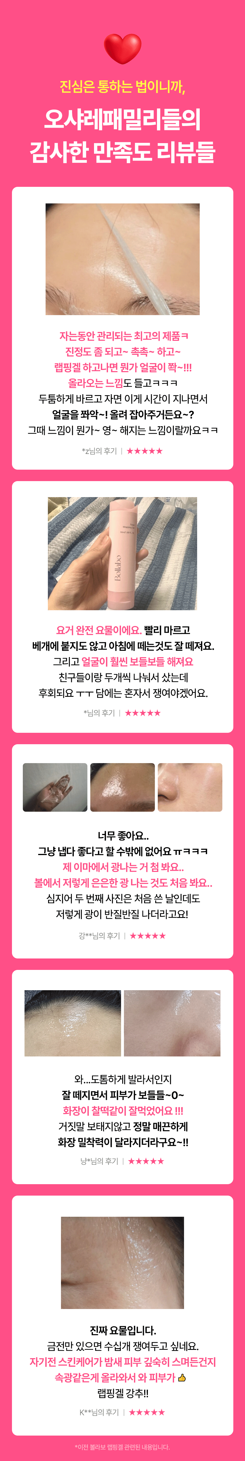 거슬릴 정도의 미끌미끌이 아니며 바른 후 흡수가 되기에 사용하기 편하실거예요.