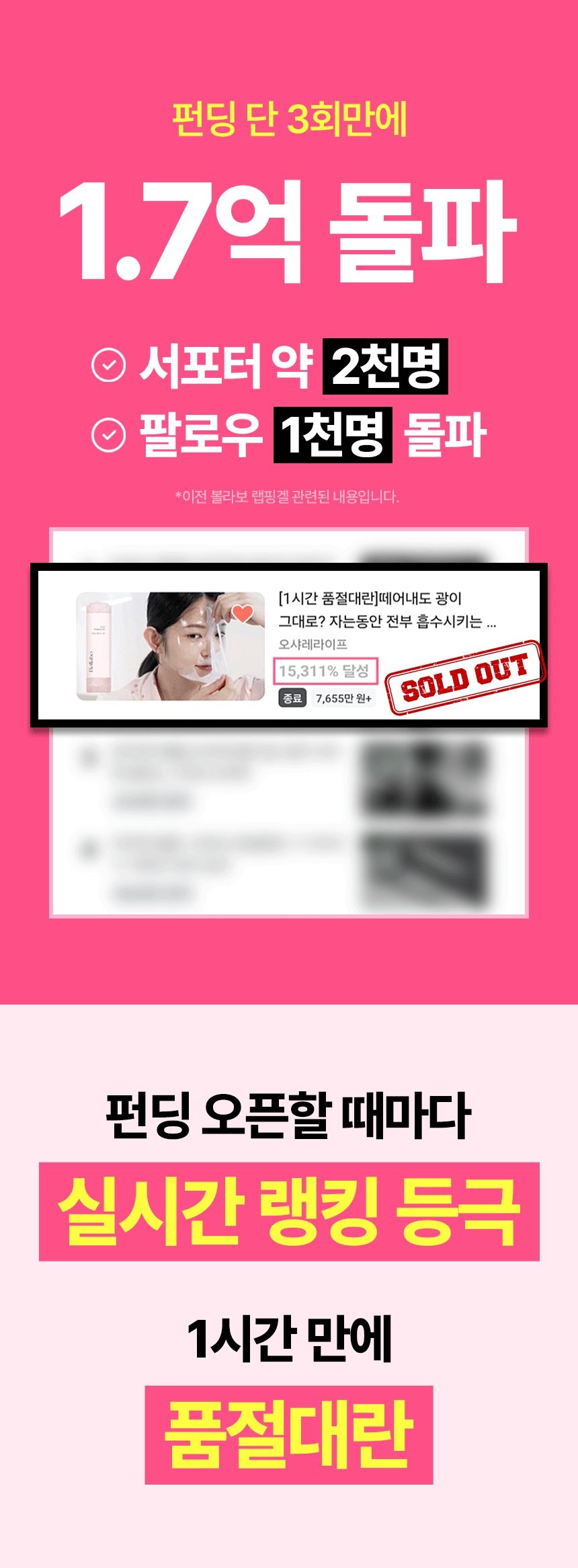 * 펀딩시, 쿠폰 / 포인트를 사용하고 일부 리워드만 펀딩금 환불되는 경우, 사용한 전액이 우선 환불 됩니다.