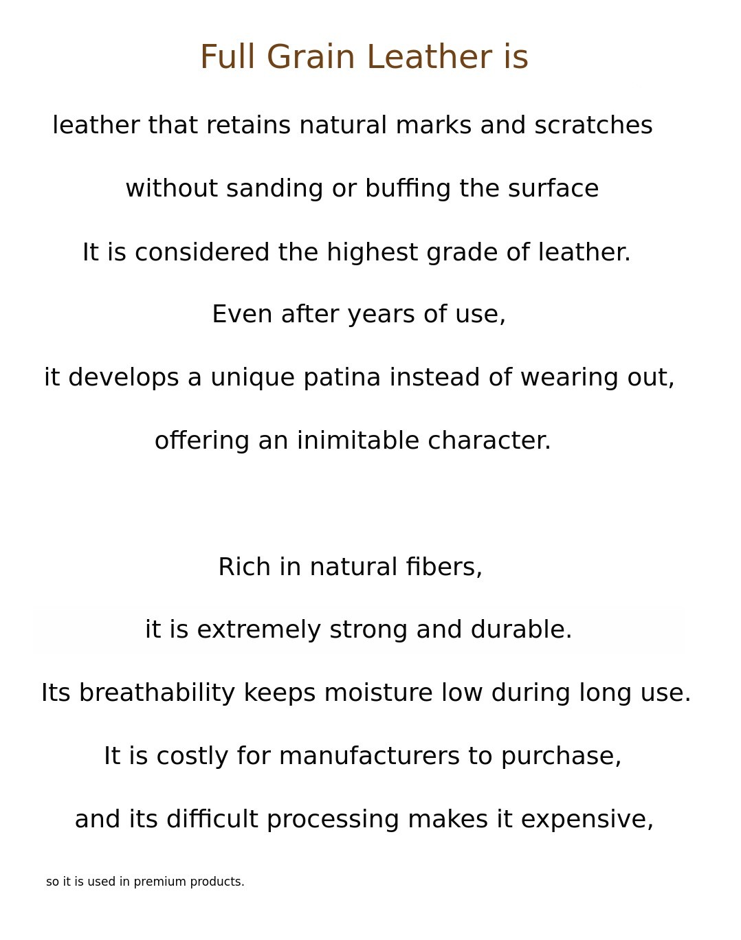Good leathershould have a soft yet durable quality. We do. Also, when using it,Aging is also an important point.